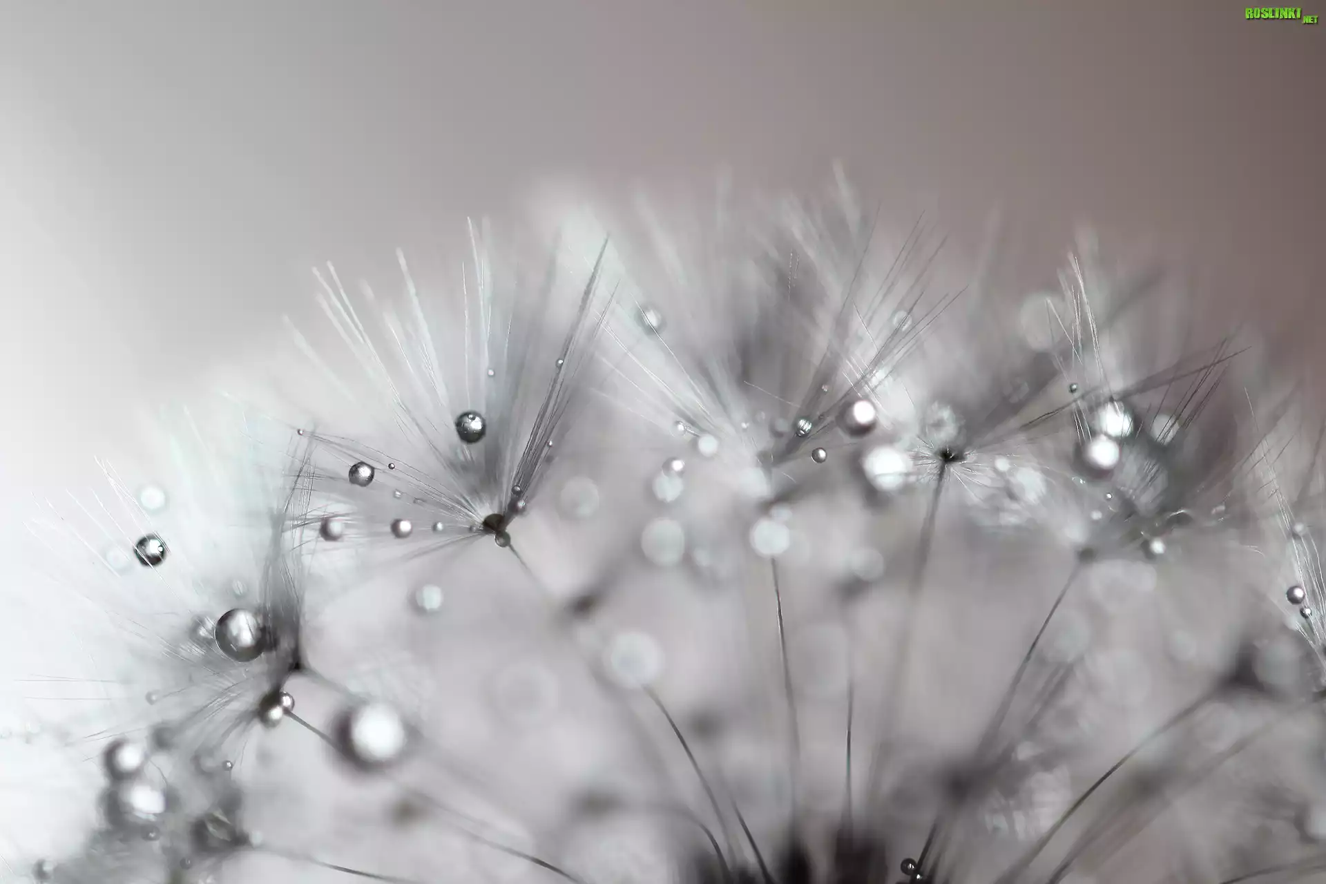 Rośliny: Dmuchawiec, Krople, Makro