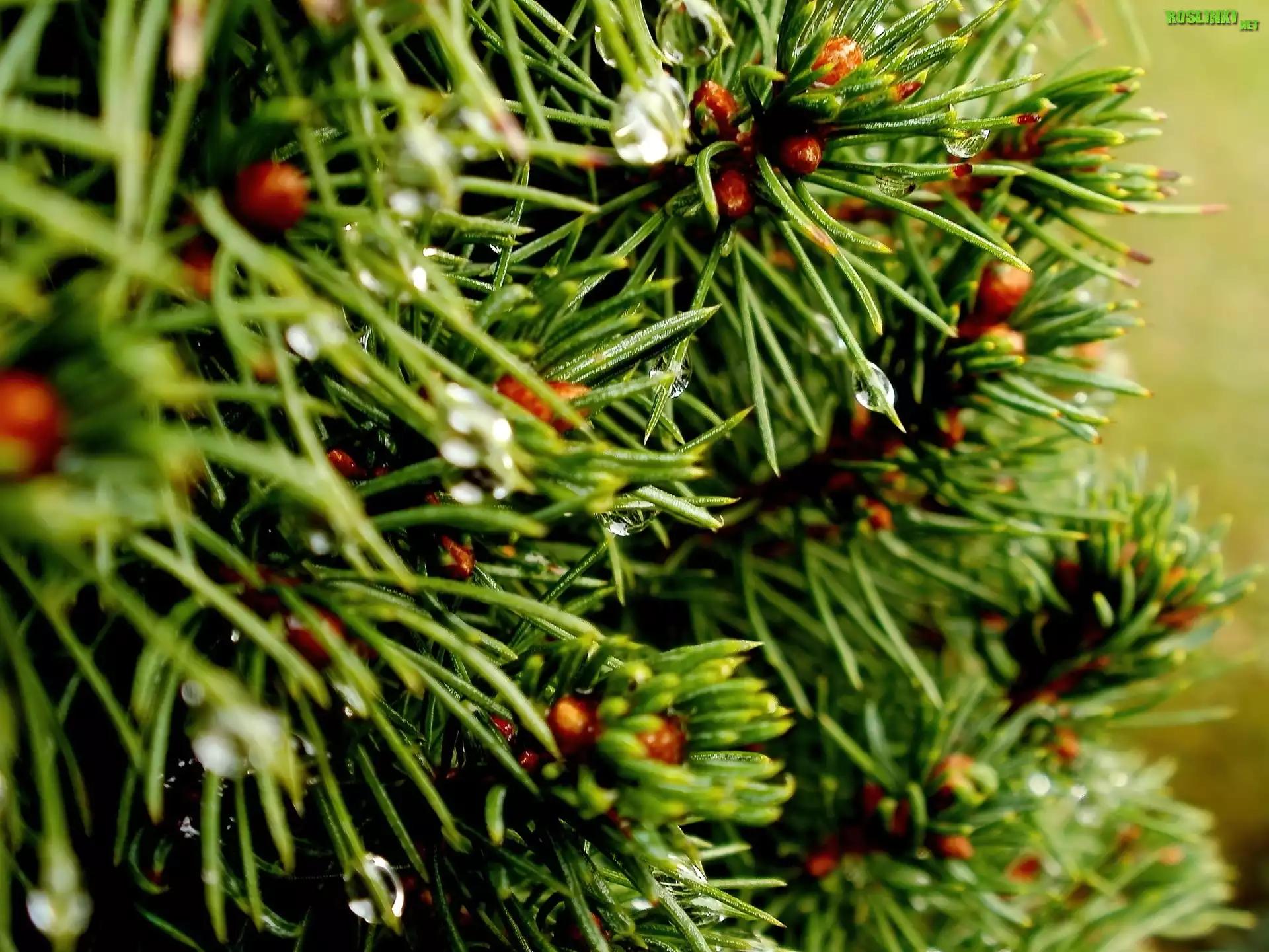 Rośliny: Iglak, Krople, Wody