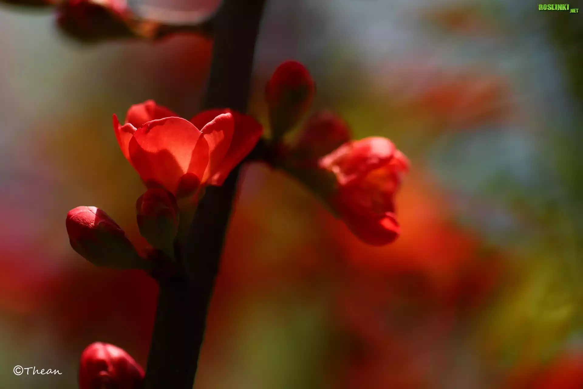 Rośliny: Krzew, Pigwowiec Japoński, Czerwone, Kwiaty