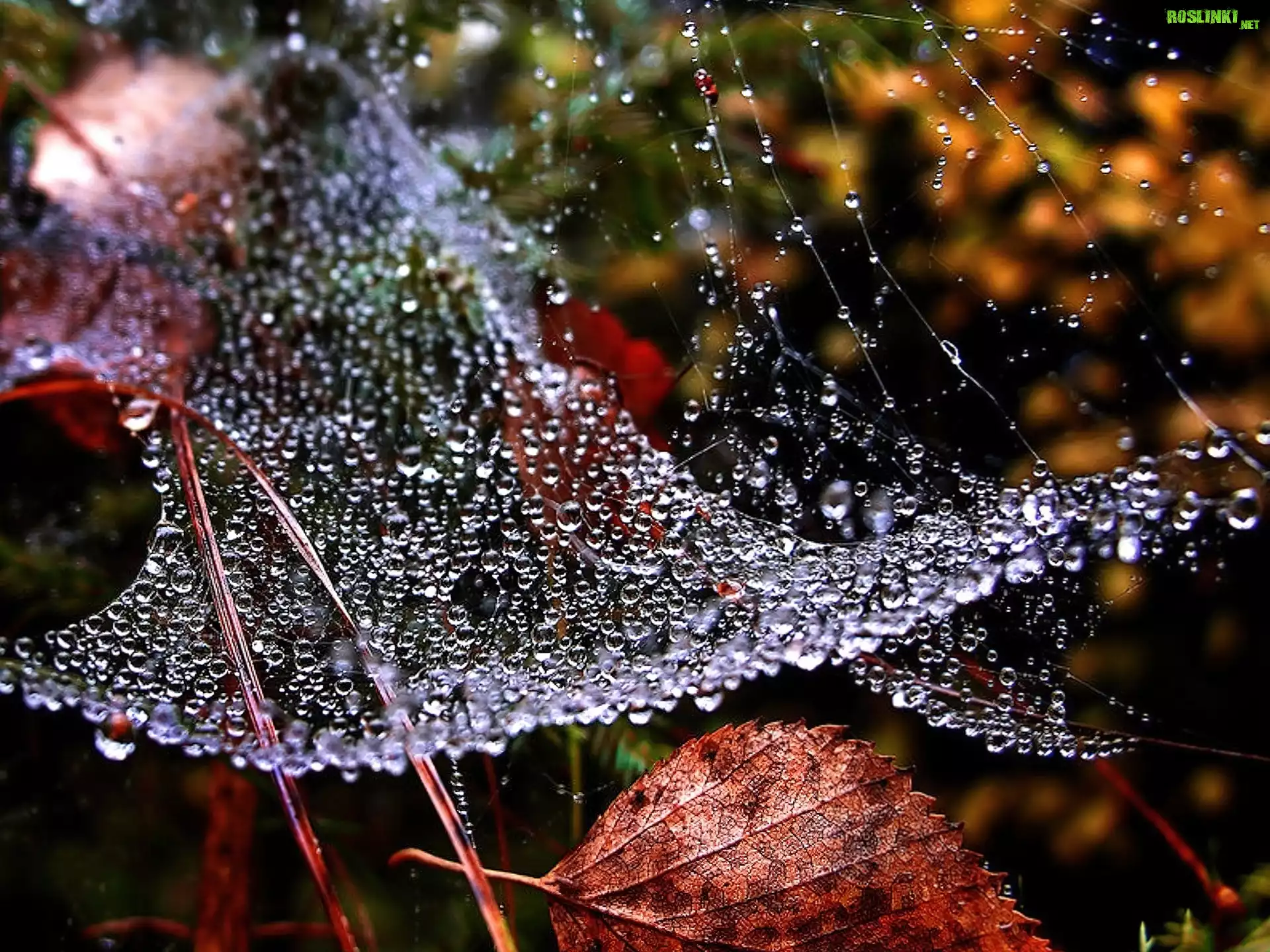 Krzew, Liście, Pajęczyna, Krople, Deszczu, Jesień