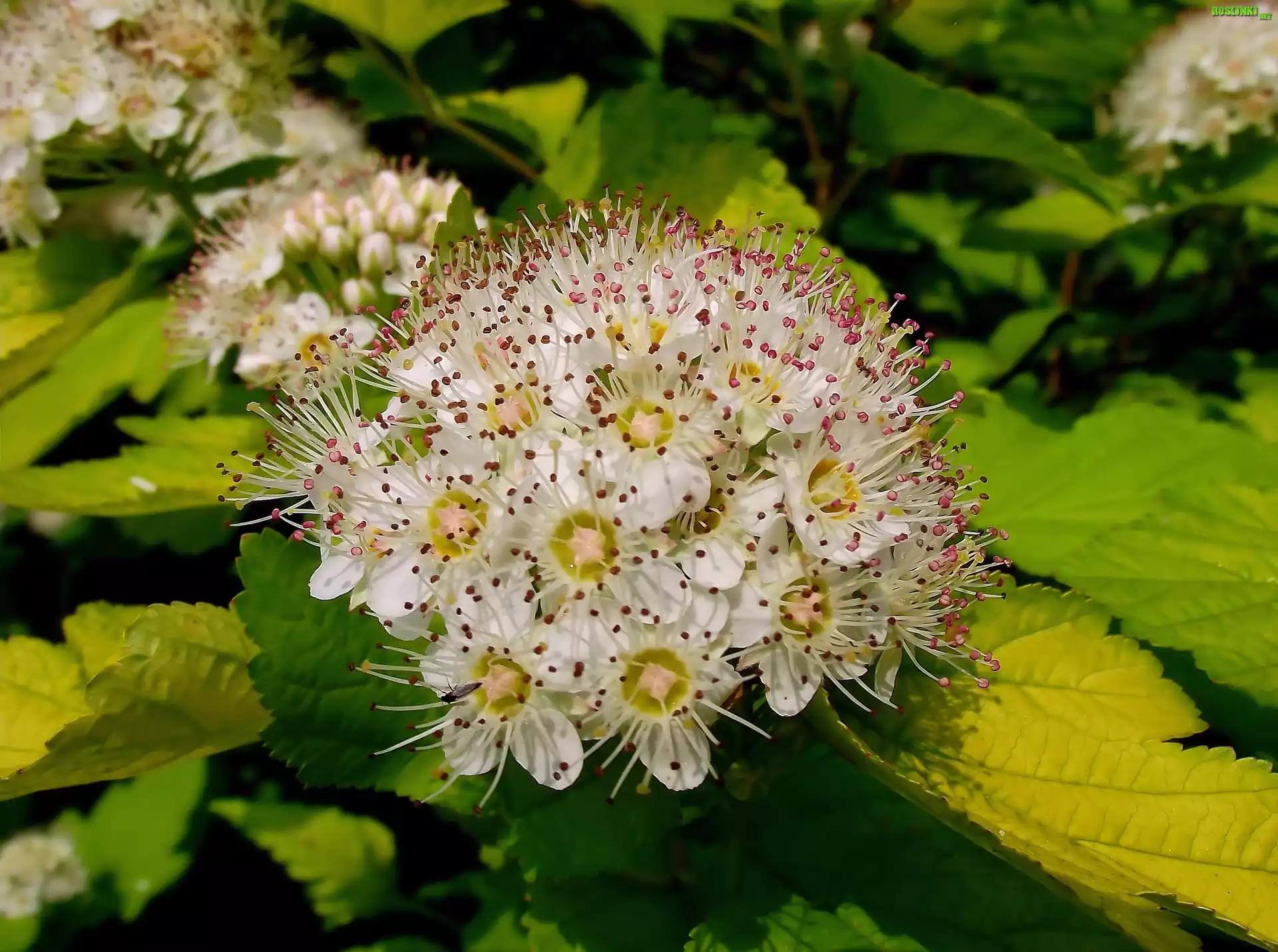 Rośliny: Krzew, Pęcherznica kalinolistna, Kwiaty