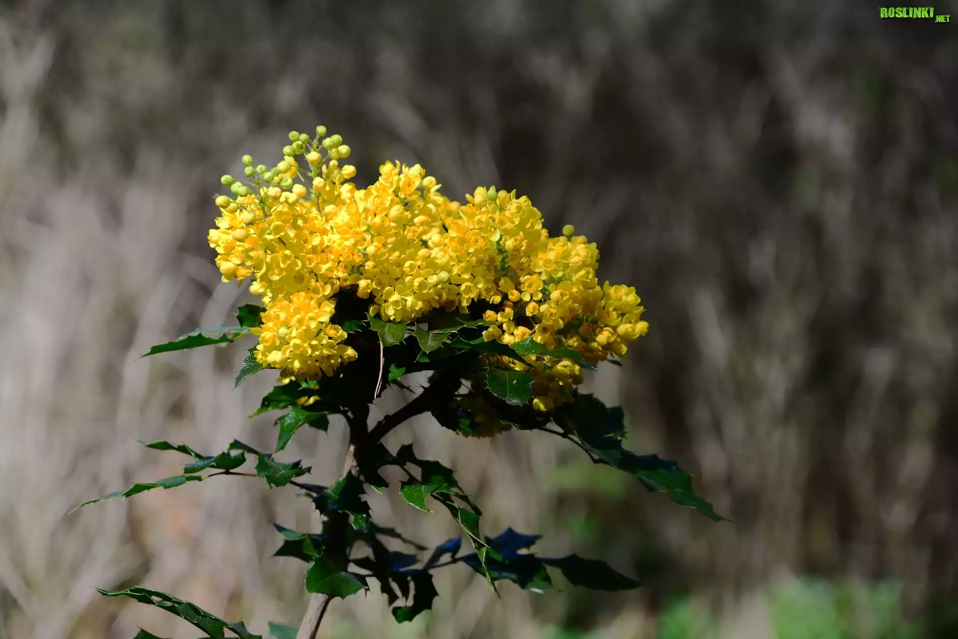 Rośliny: Krzew, Gałązka, Mahonia pospolita, Żółte, Kwiaty