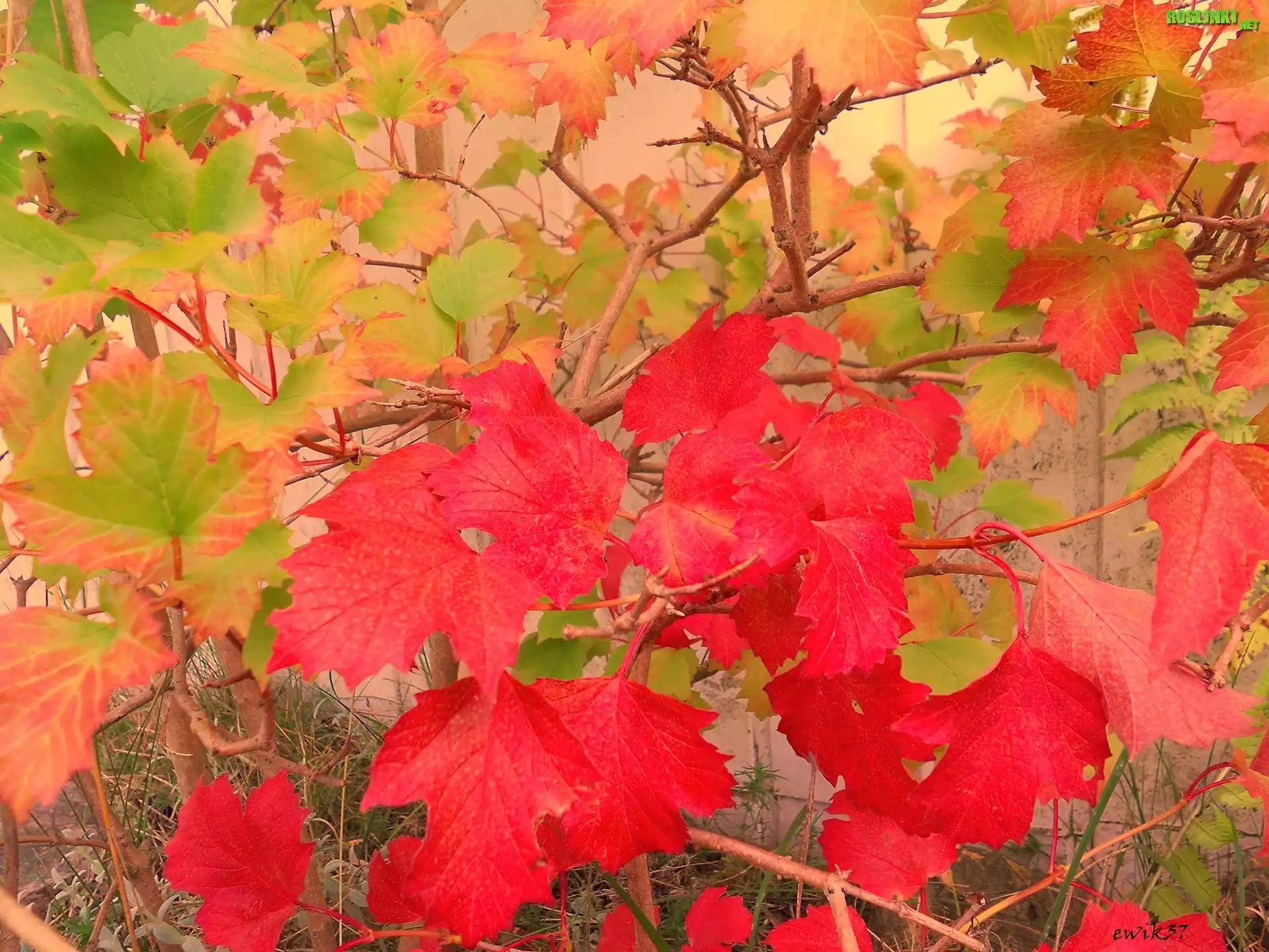 Rośliny: Krzew, Liście, Żółto, Zielone, Czerwone