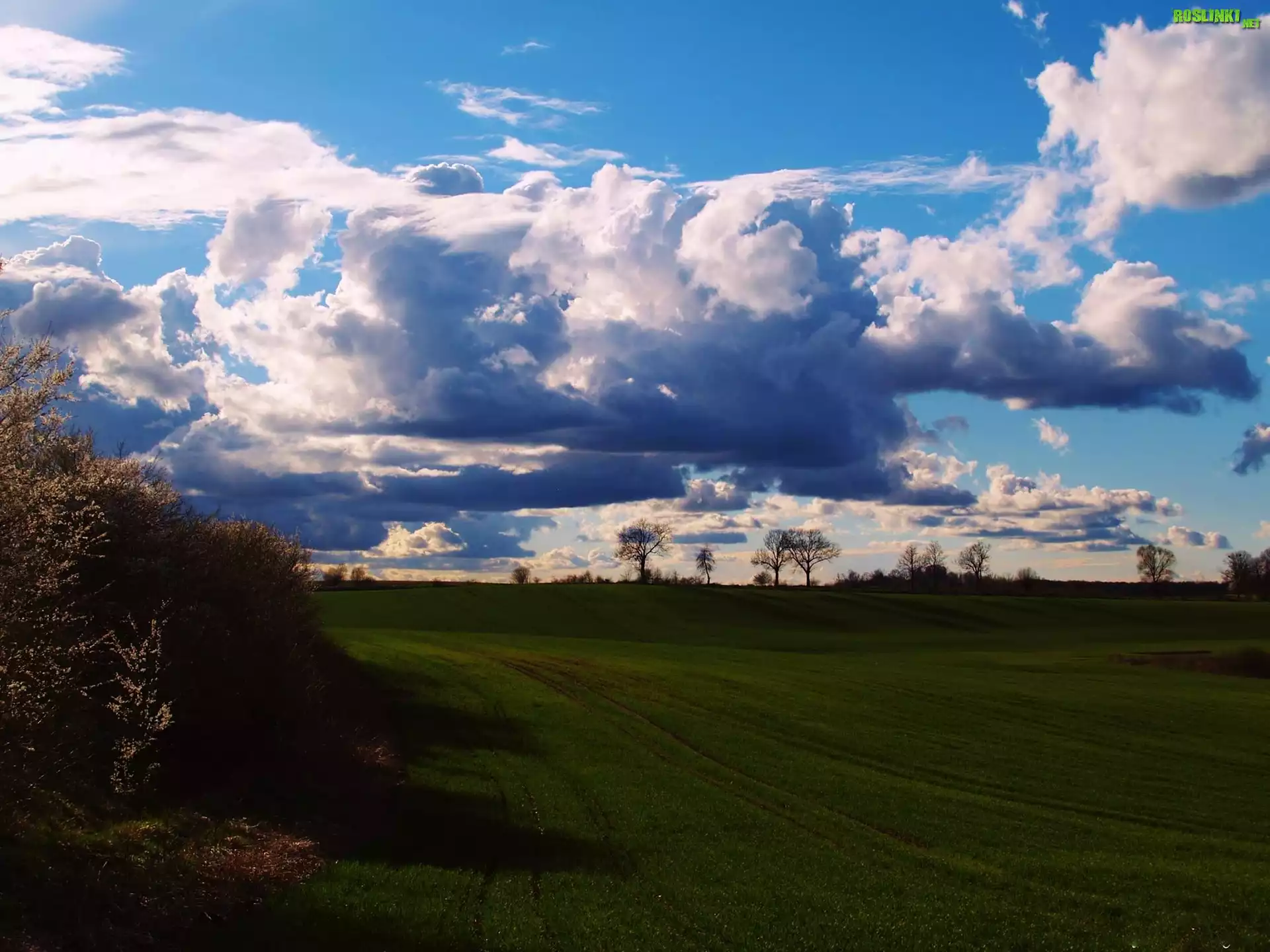Rośliny: Krzewy, Pole, Chmury, Niebo