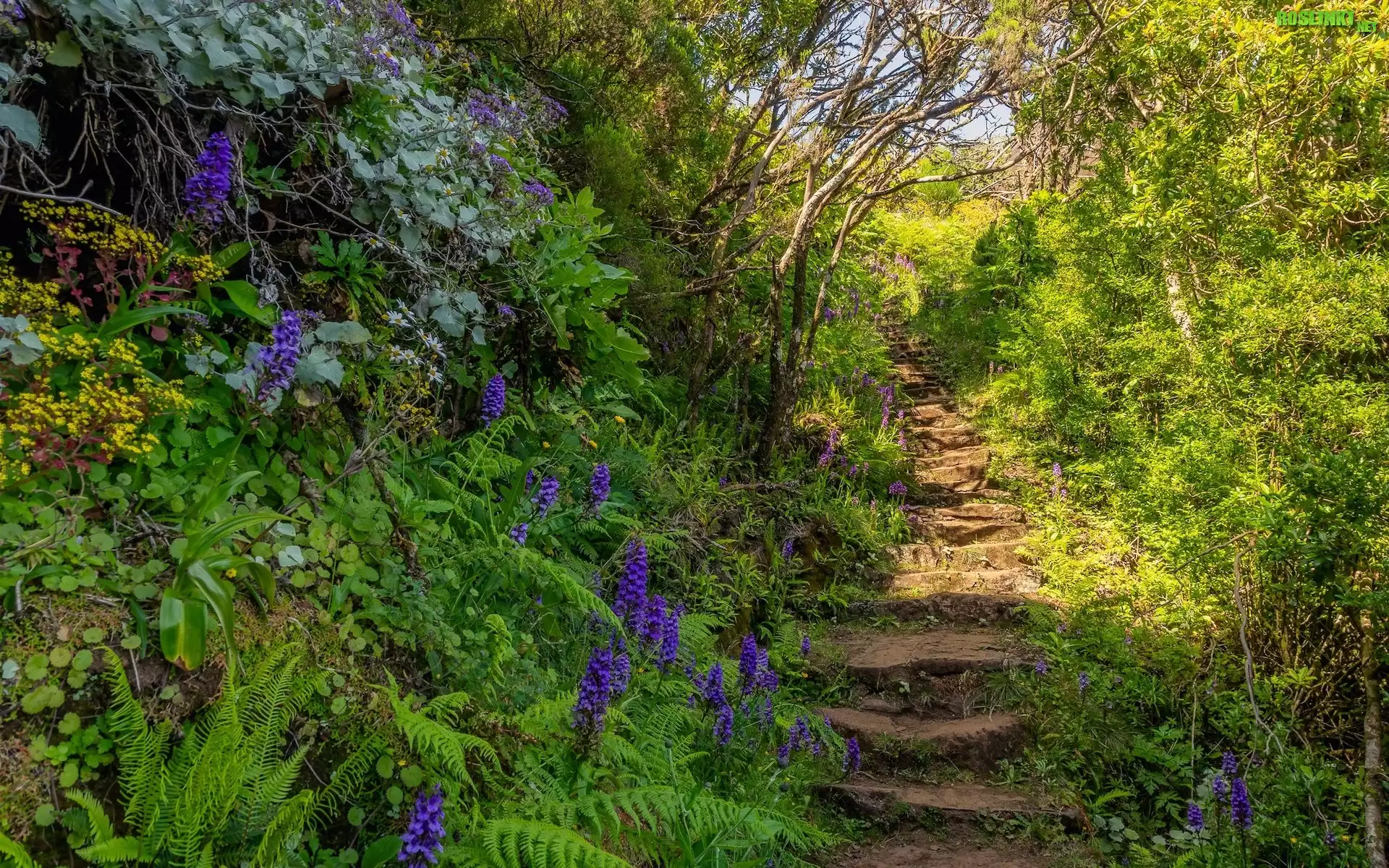 Rośliny: Park, Drzewa, Kwiaty, Krzewy, Paprocie, Schodki, Kamienne