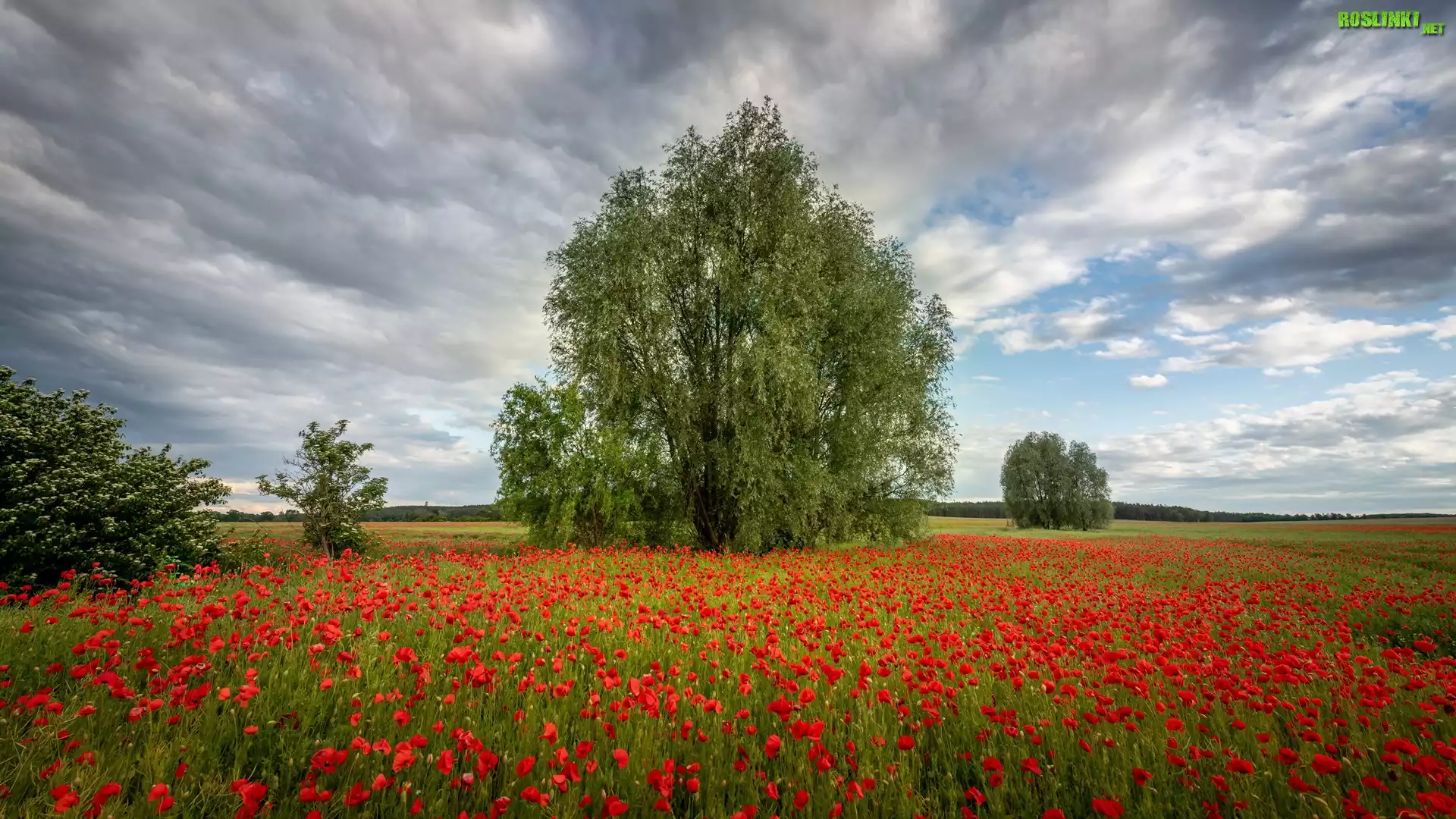 Rośliny: Łąka, Maki, Drzewa, Krzewy, Chmury