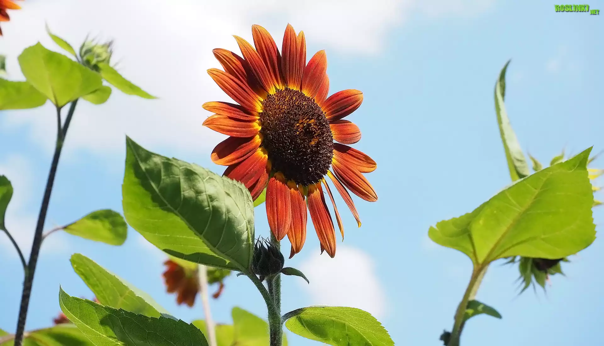 Rośliny: Kwiat, Słonecznik, Liście, Niebo