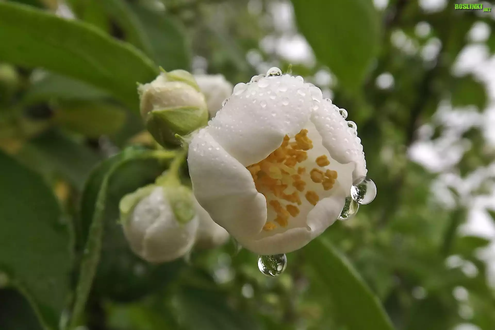 Rośliny: Kwiat, Jaśmin, Krople, Rosy, Liście
