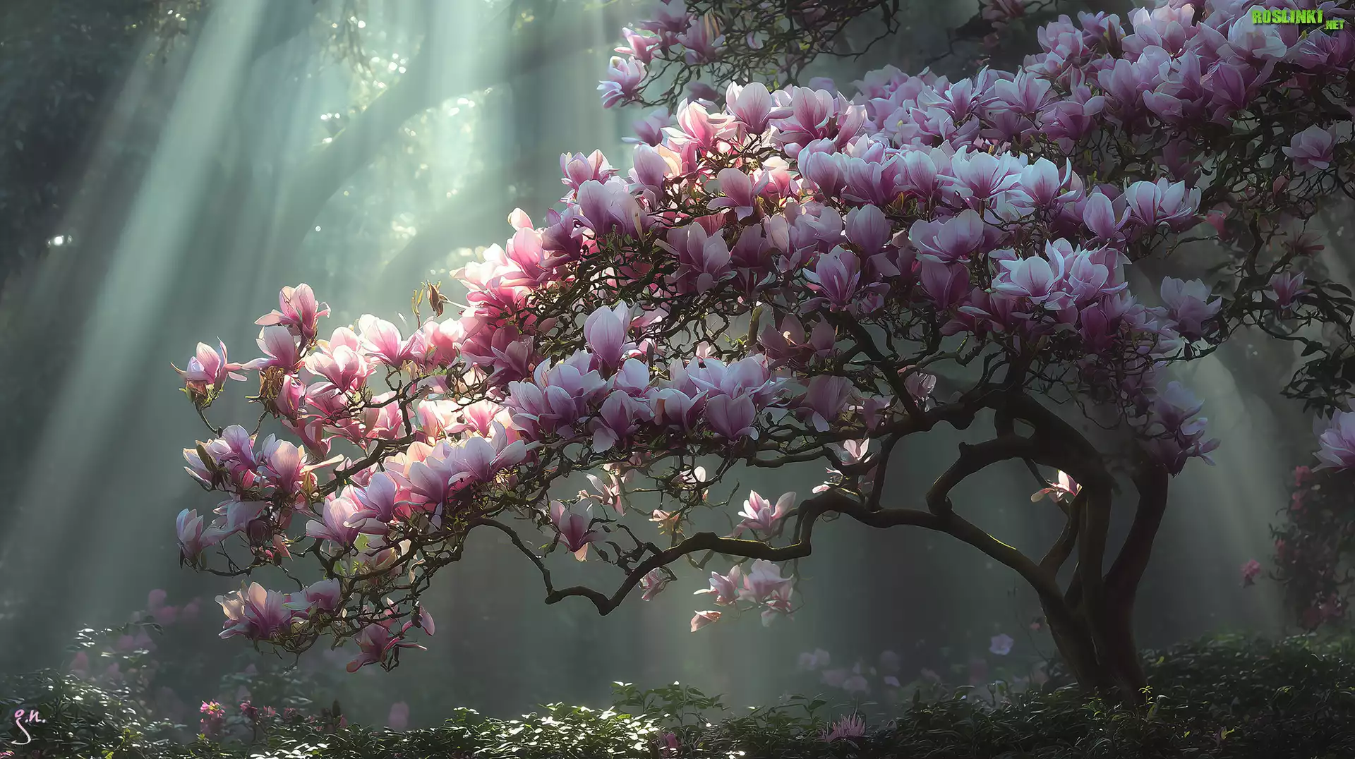 Rośliny: Magnolia, Krzew, Różowe, Kwiaty, Grafika AI