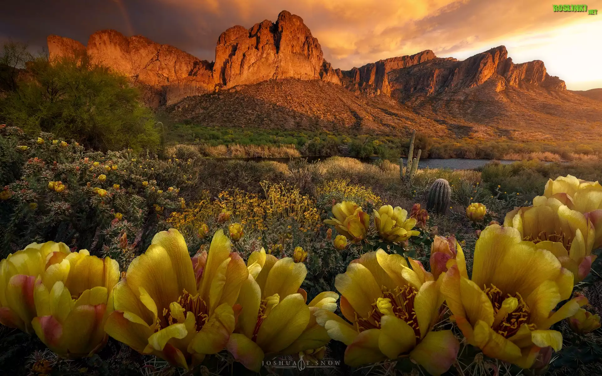 Rośliny: Stany Zjednoczone, Arizona, Góry, Skały, Rzeka, Kaktusy, Kwiaty