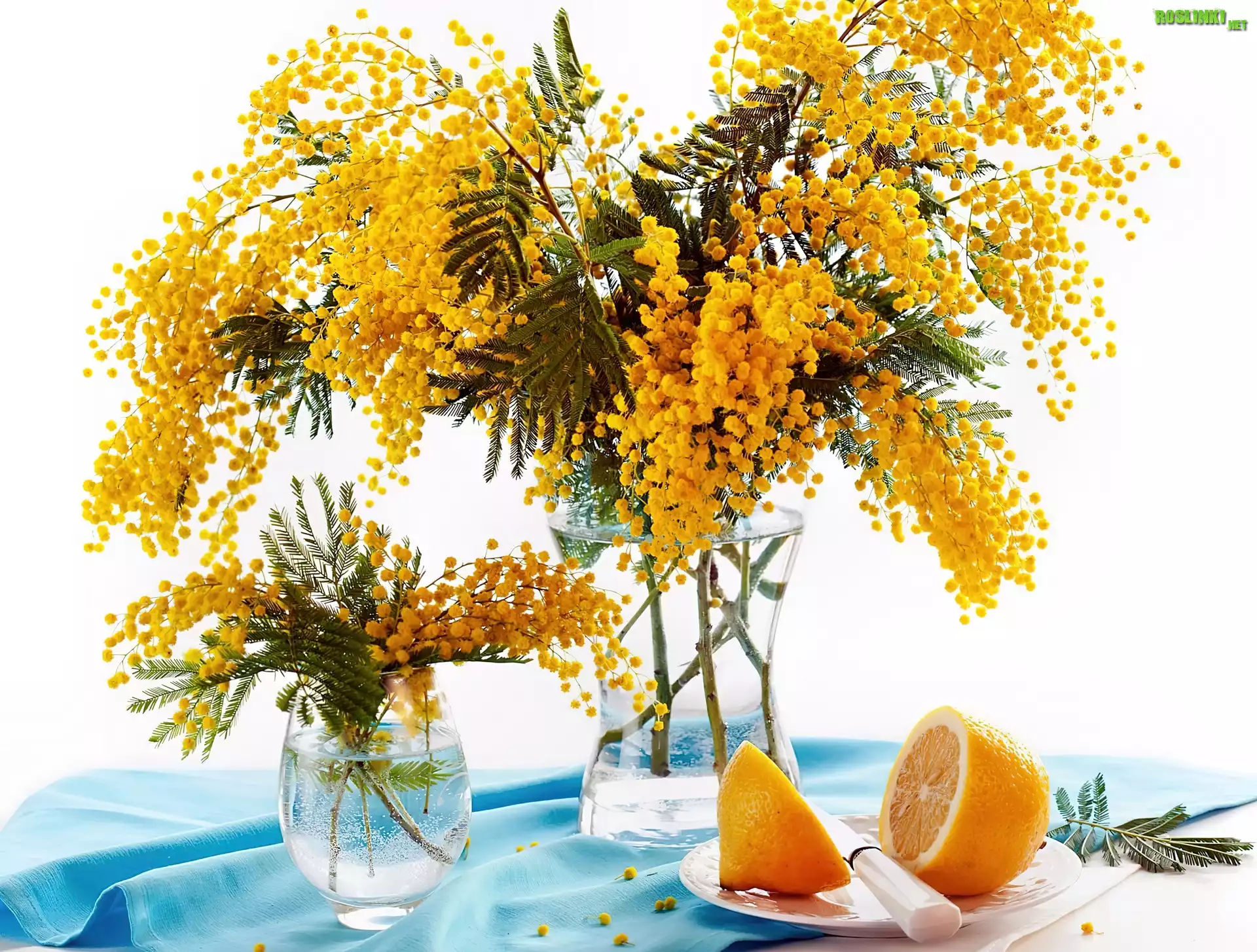 Kwiaty, Mimozy, Bukiet, Kompozycja