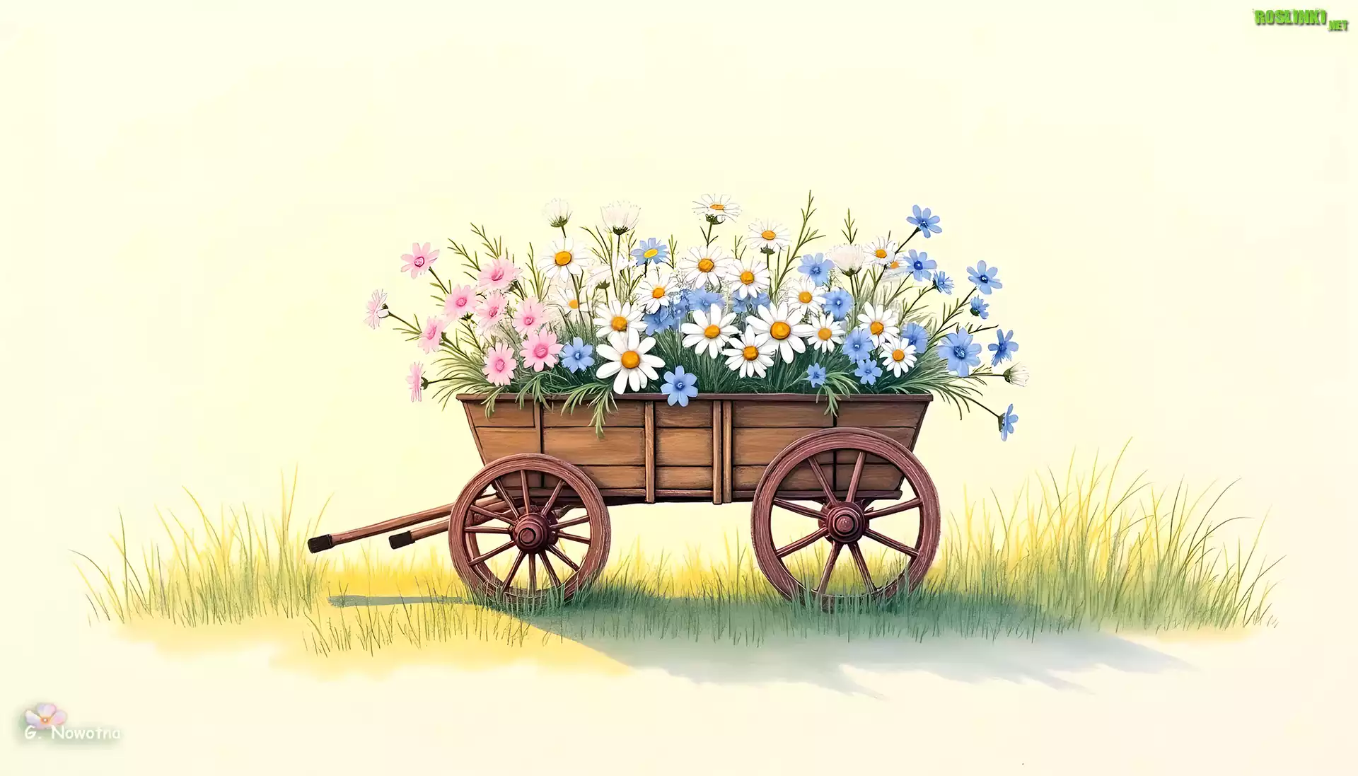 Rośliny: Kolorowe, Kwiaty, Drewniany, Wózek, Trawa