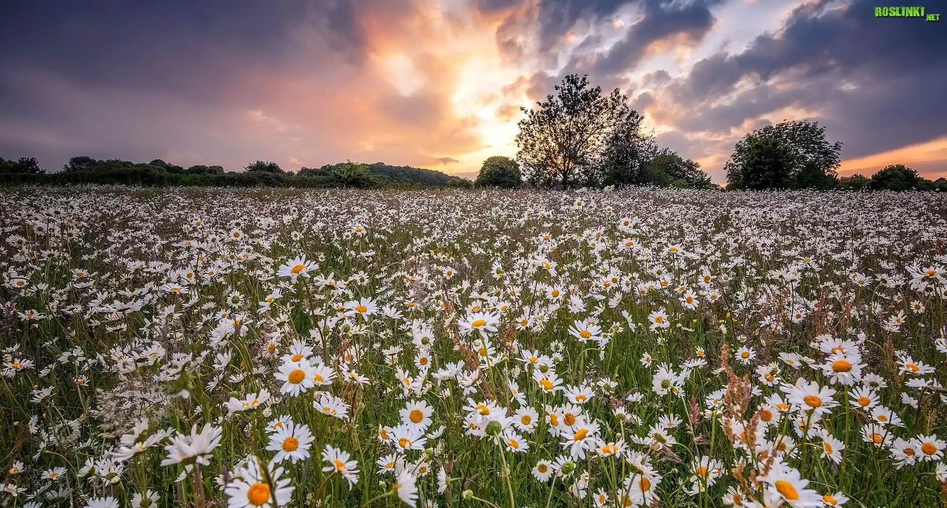 Rośliny: Kwiaty, Margerytki, Drzewa, Łąka