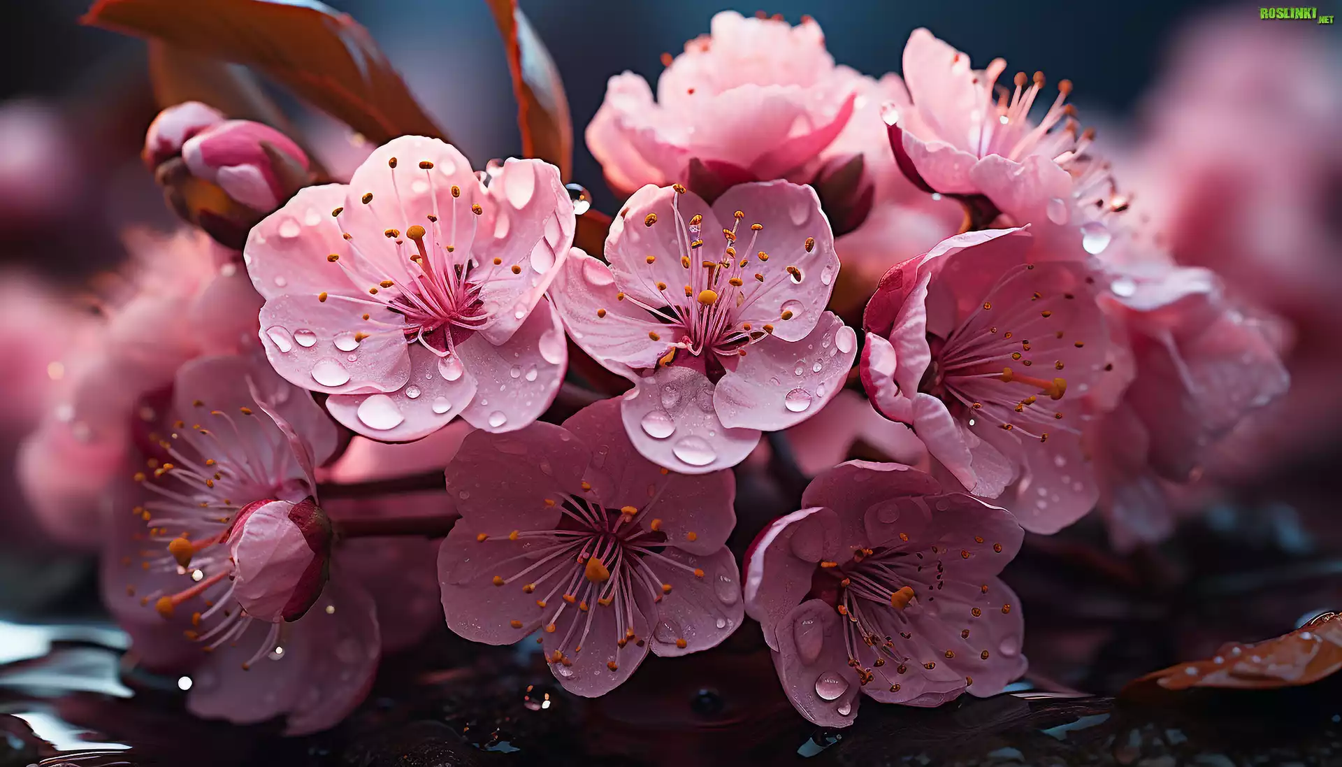 Rośliny: Różowe, Kwiaty, Drzewo owocowe, Krople