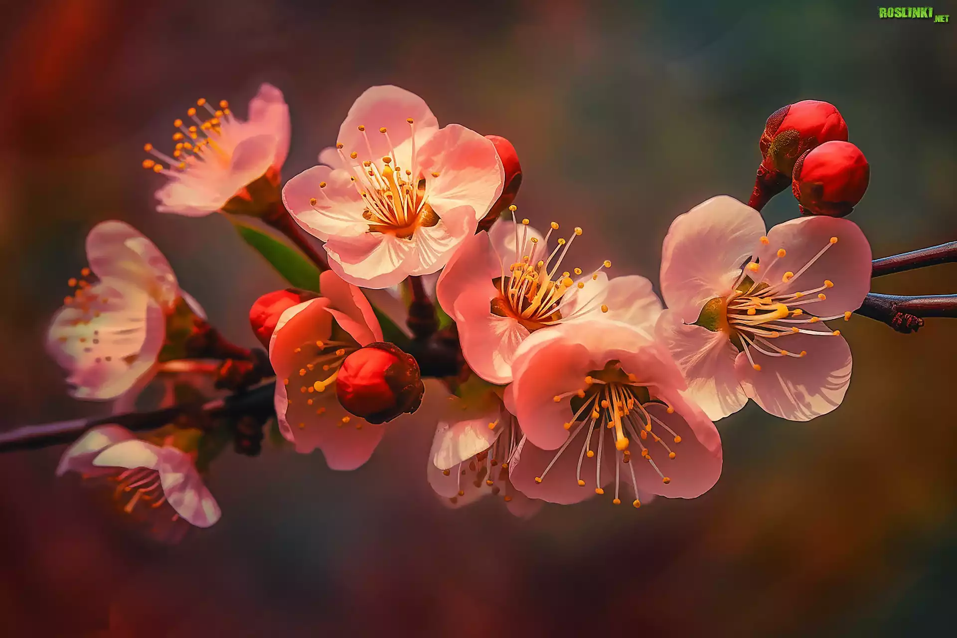 Rośliny: Gałązka, Drzewo owocowe, Kwiaty, Pąki, Grafika