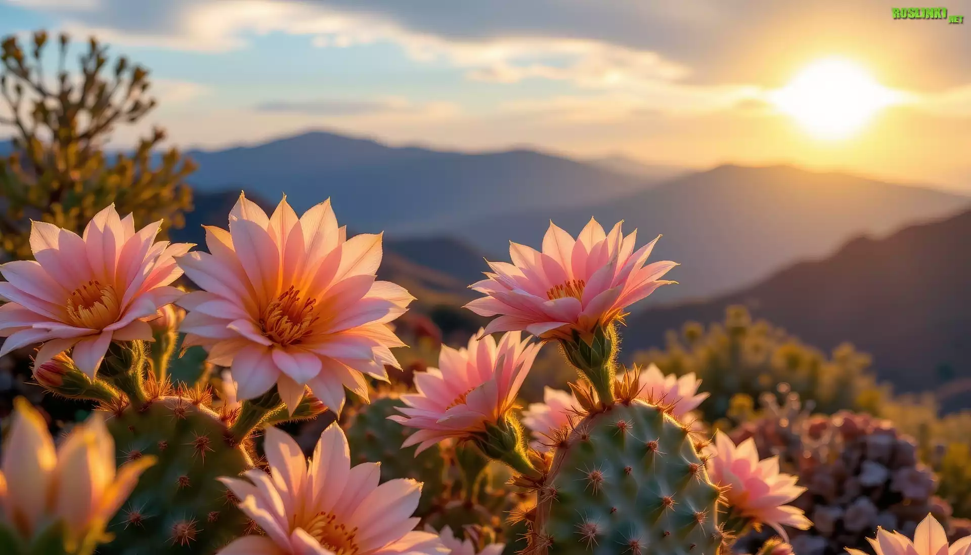 Rośliny: Różowe, Kwiaty, Kaktusy, Wschód słońca