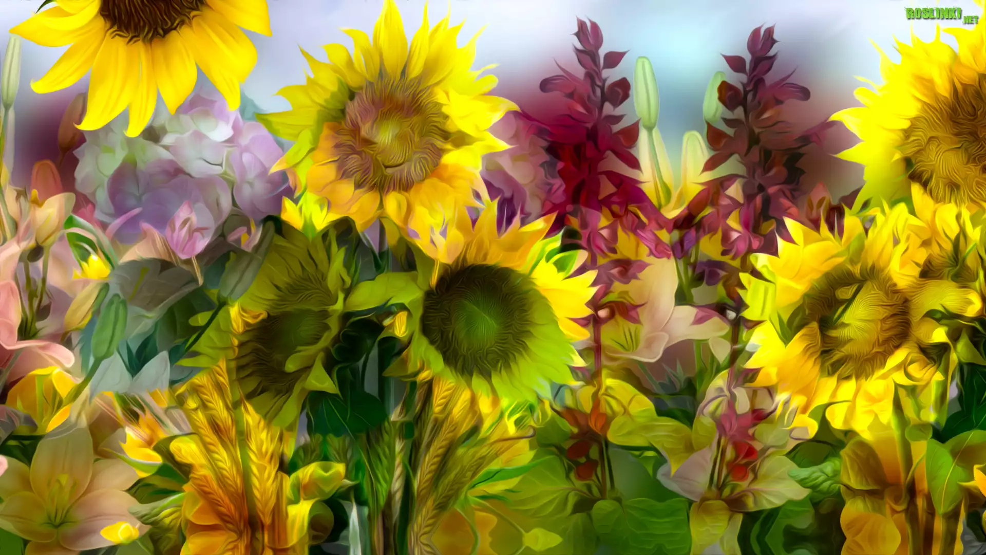 Rośliny: Kwiaty, Słoneczniki, Kłosy, Grafika