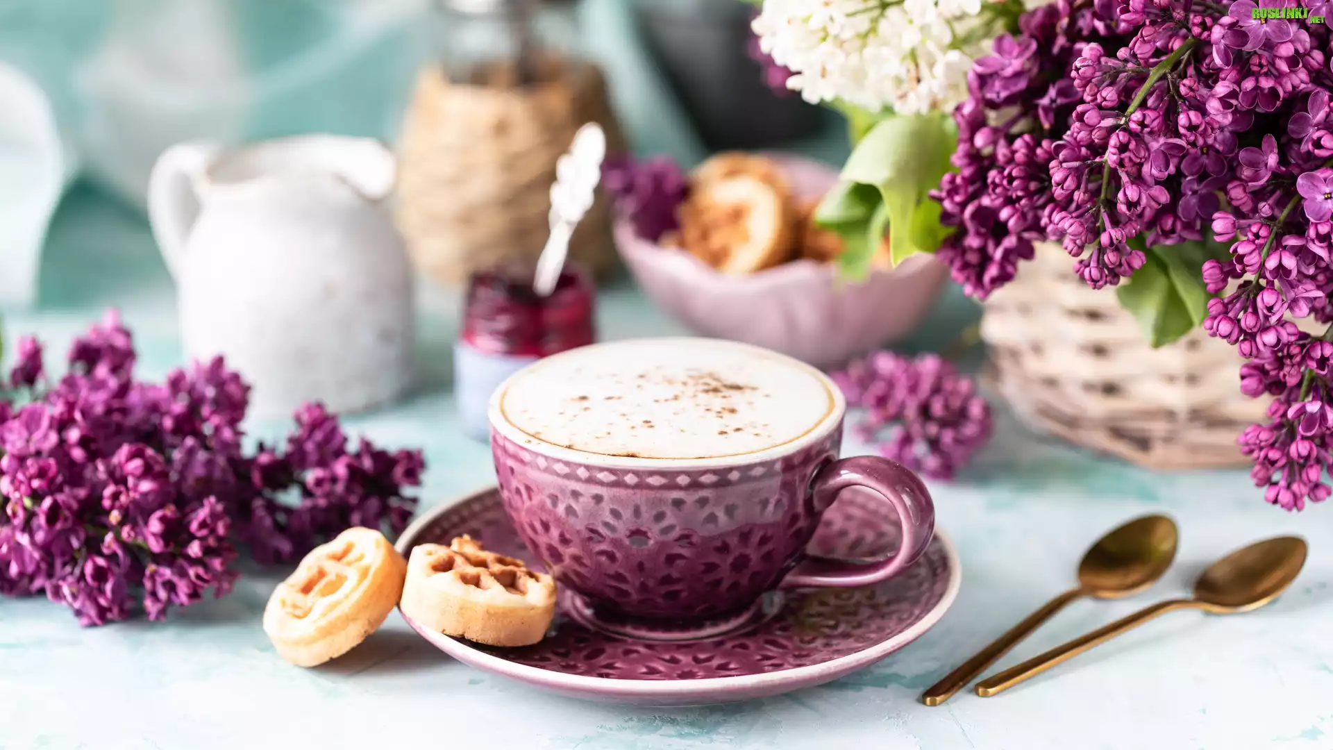 Kwiaty, Bez, Kawa, Filiżanka, Małe, Gofry