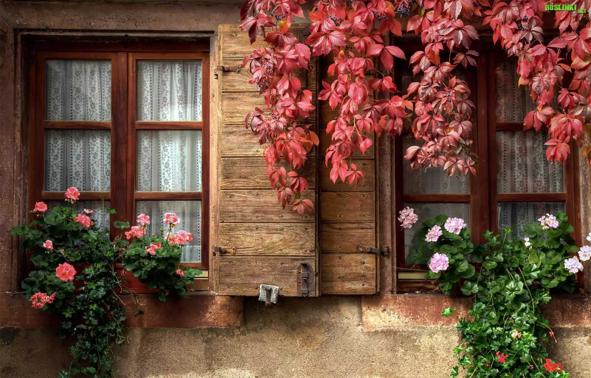 Rośliny: Okna, Kwiaty, Liście, Pelargonie, Fasada, Dom Liście