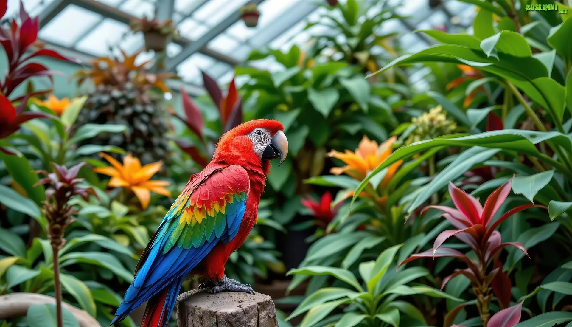 Rośliny: Papuga, Ara, Oranżeria, Kwiaty, Rośliny, Grafika AI