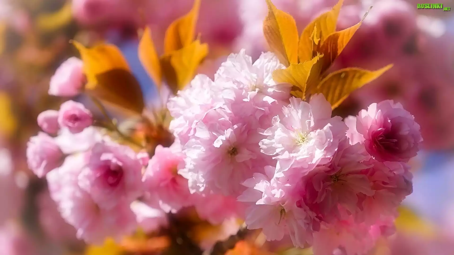 Kwiaty, Wiśnia japońska, Drzewo owocowe, Liście