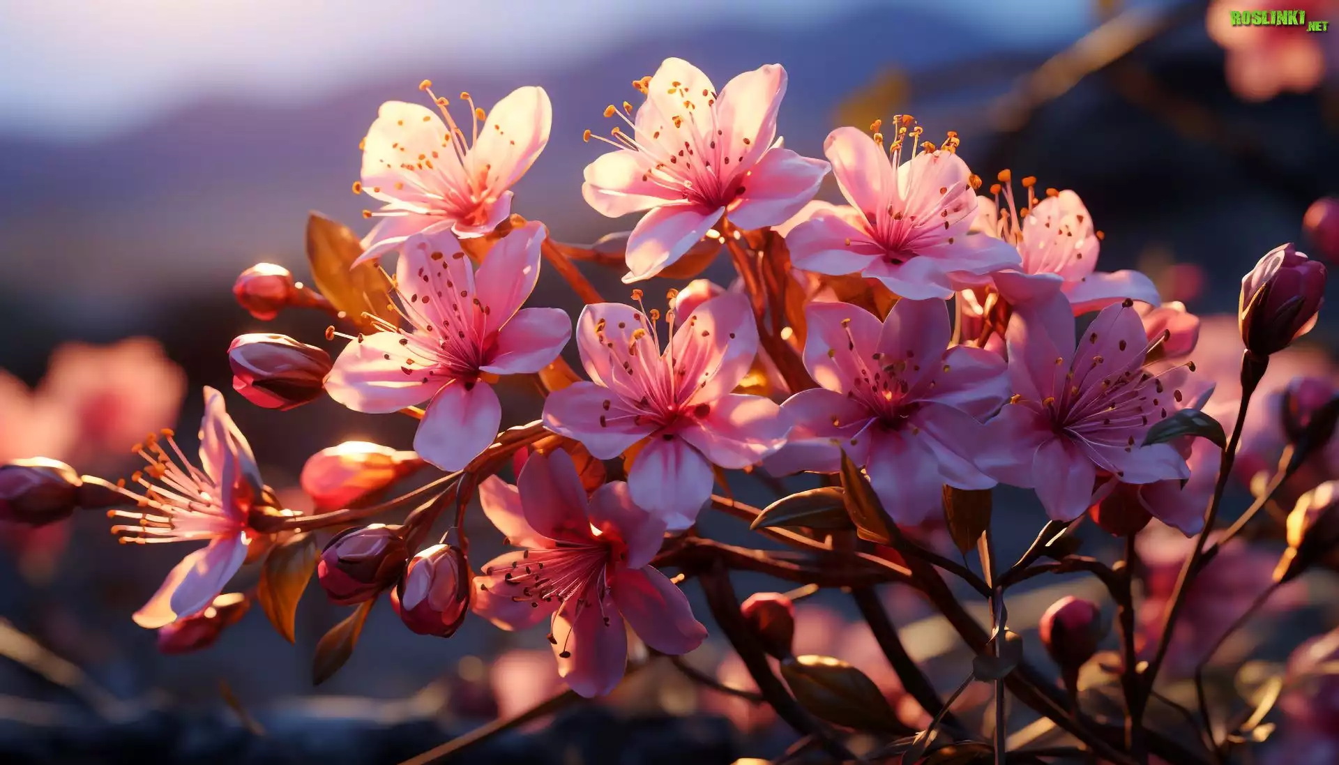 Rośliny: Drzewo owocowe, Gałązki, Kwiaty, Różowe, Pąki