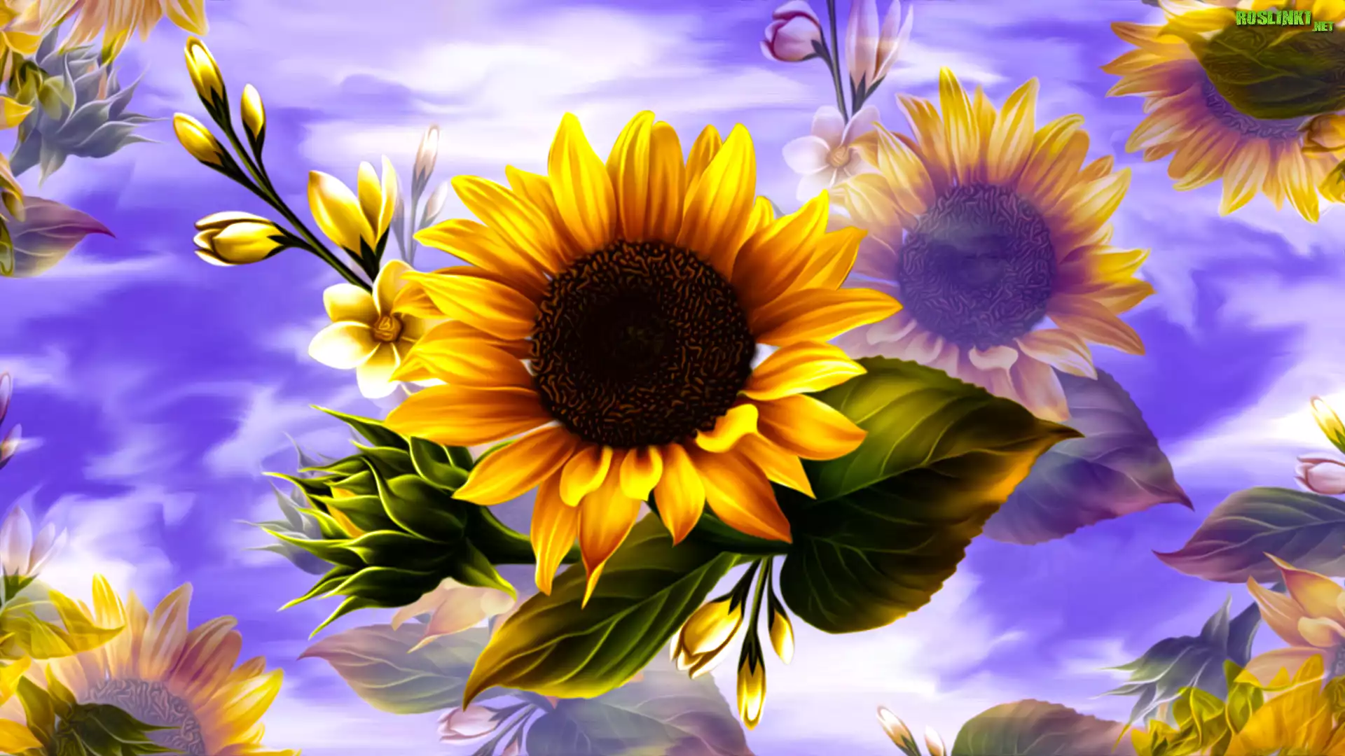 Kwiaty, Słonecznik, Pąki, Grafika