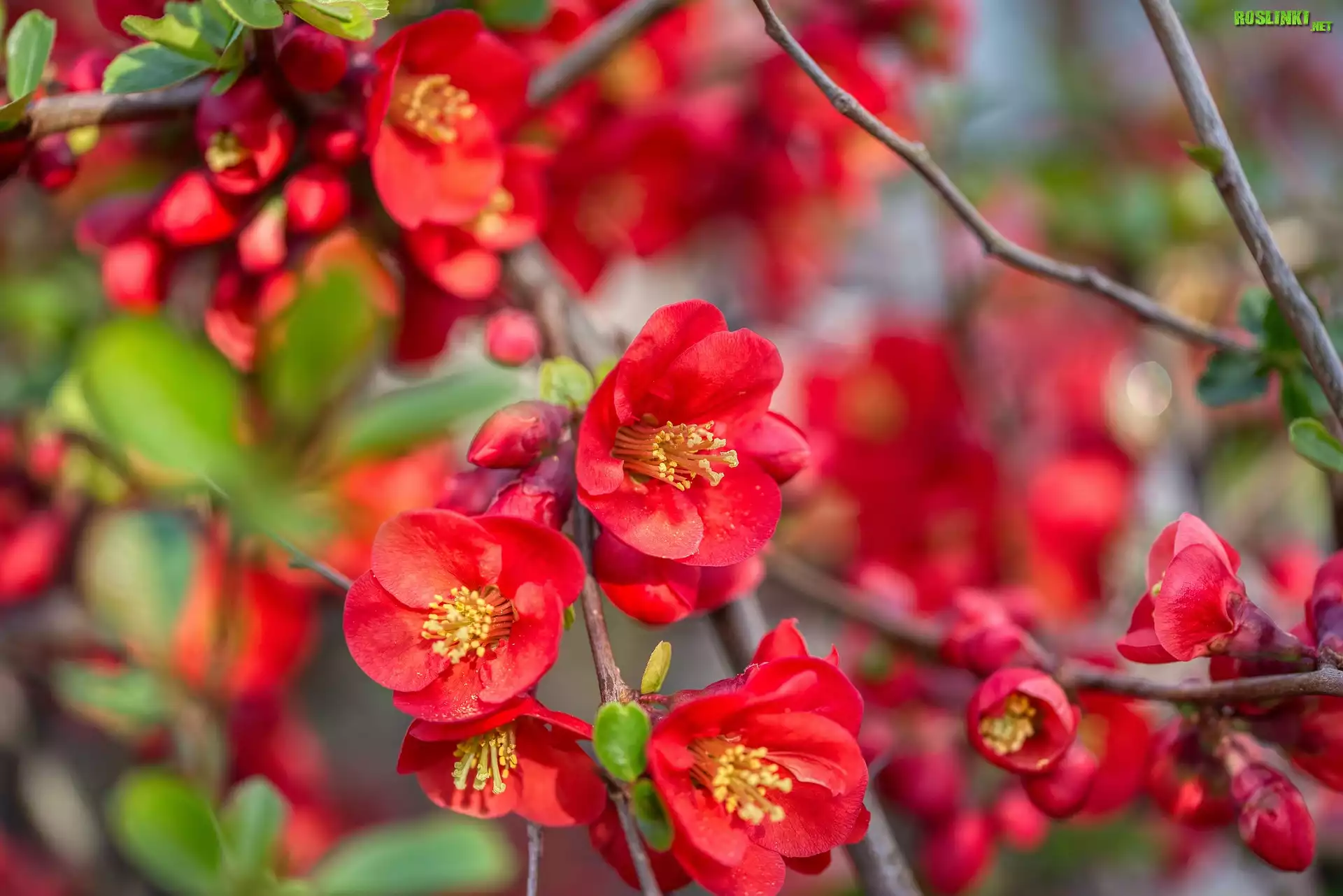 Rośliny: Czerwone, Kwiaty, Pigwowiec japoński, Gałązki