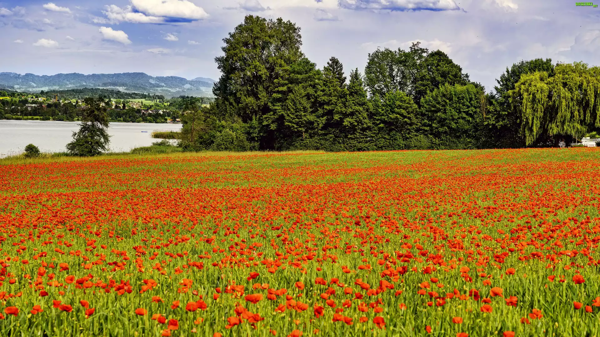Rośliny: Maki, Kwiaty, Pole, Drzewa, Krajobraz