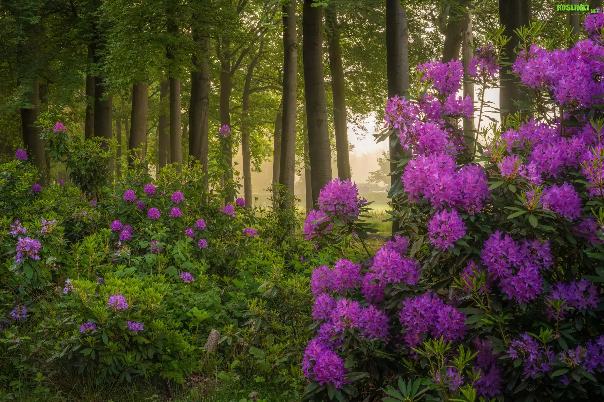 Rośliny: Las, Drzewa, Krzewy, Kwiaty, Fioletowe, Rododendrony