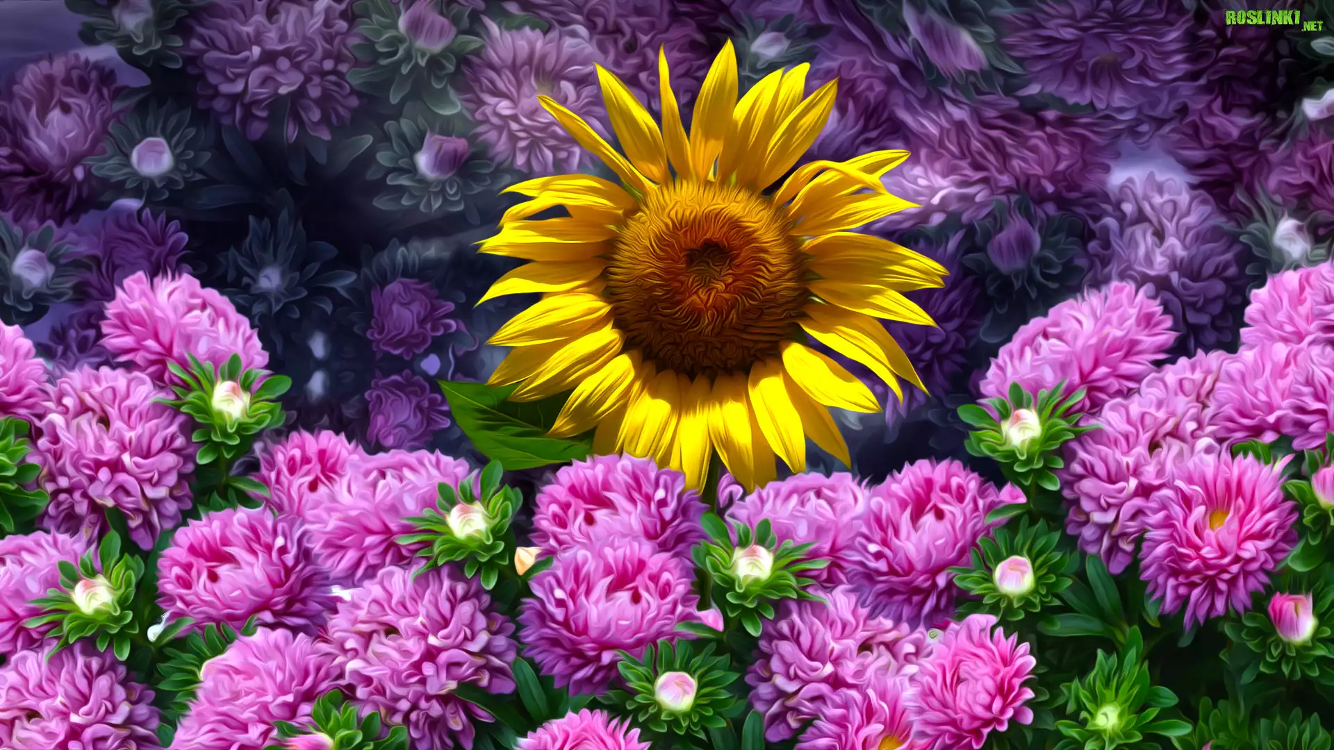 Rośliny: Kwiaty, Astry, Słonecznik, Grafika