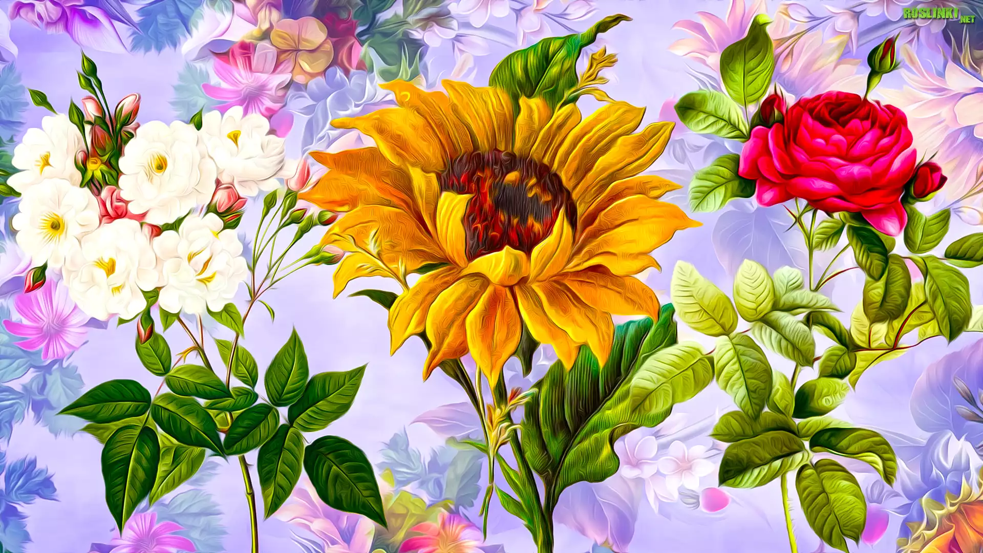 Rośliny: Kwiaty, Róże, Słonecznik, Grafika