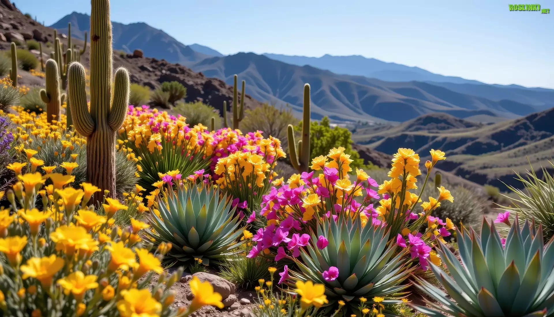 Rośliny: Kaktusy, Kwiaty, Wzgórze, Grafika AI