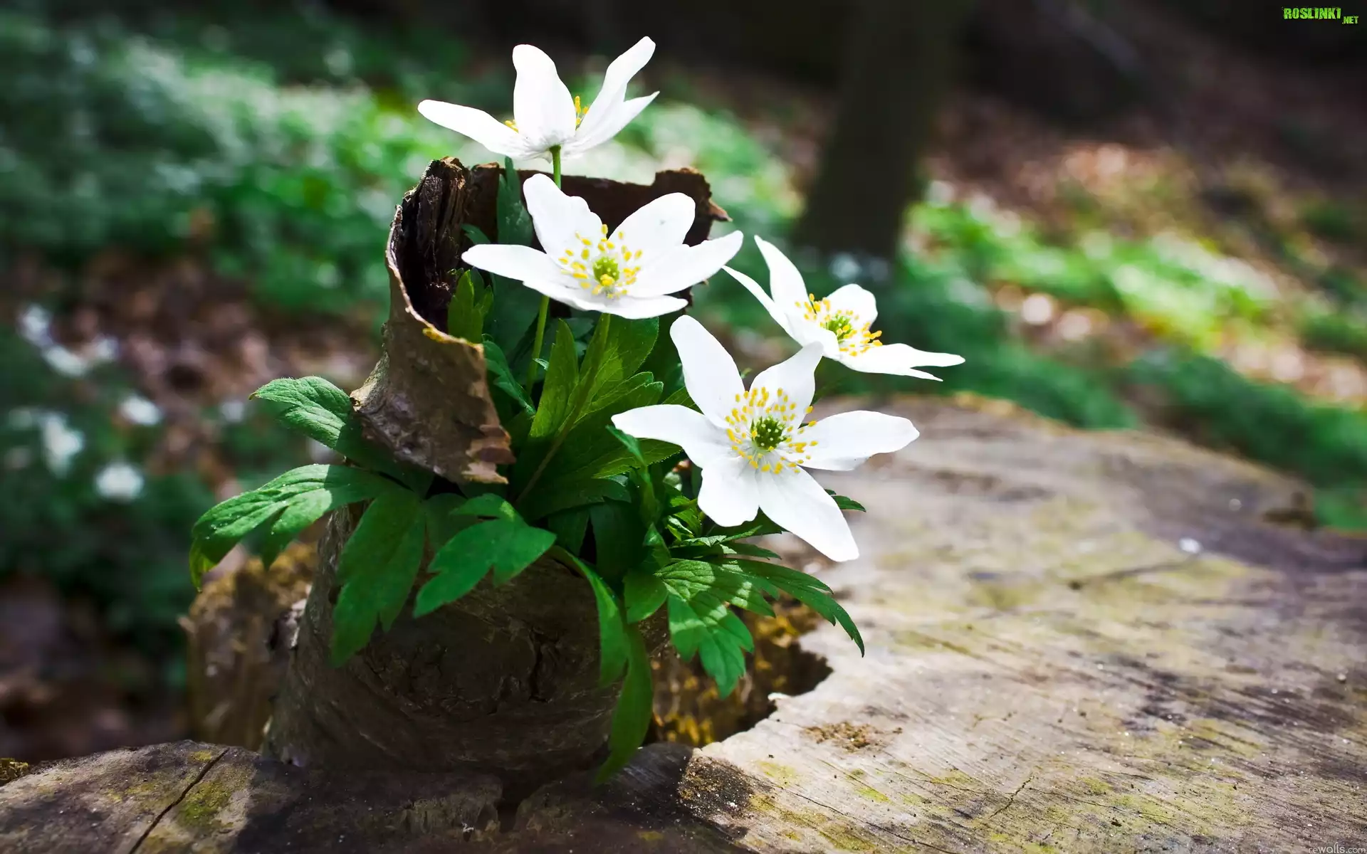 Rośliny: Kwiaty, Białe, Zawilce, Kora