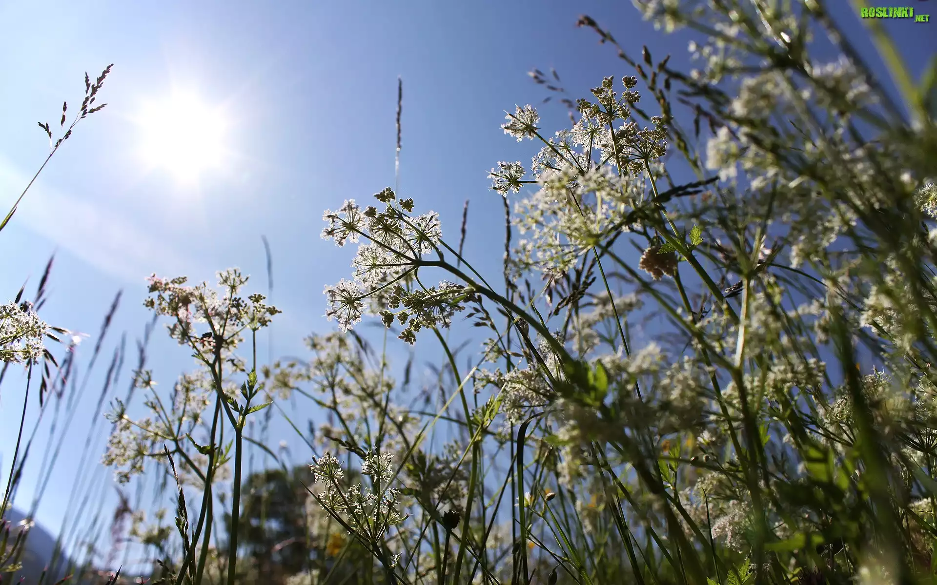 Rośliny: Kwitnąca, Trawa, Niebo, Słońce