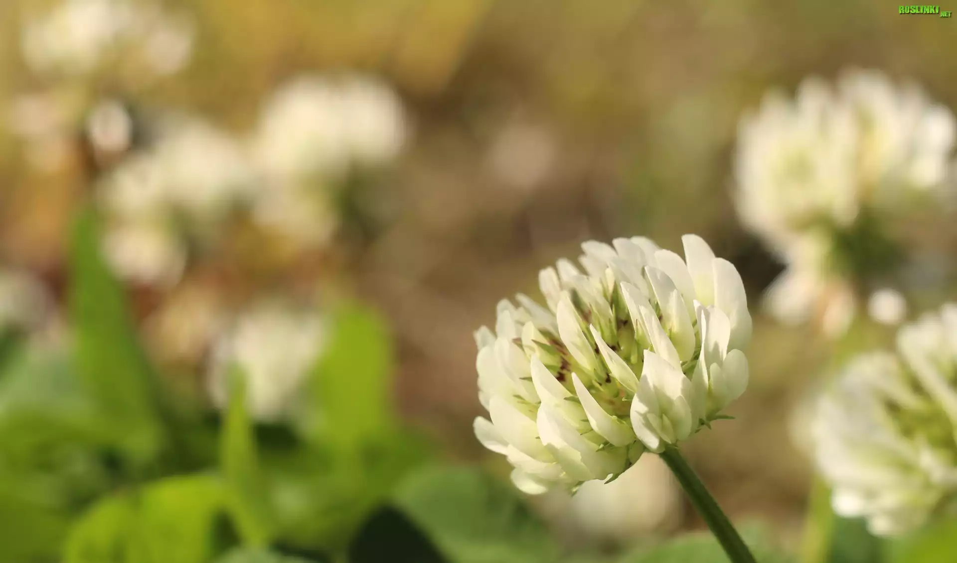 Rośliny: Kwitnąca, Biała, Koniczyna, Zbliżenie, Rozmyte tło
