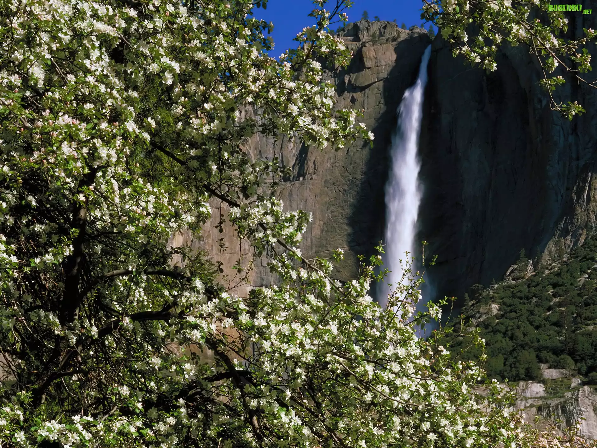 Rośliny: Kwitnące, Drzewa, Skała, Wodospad