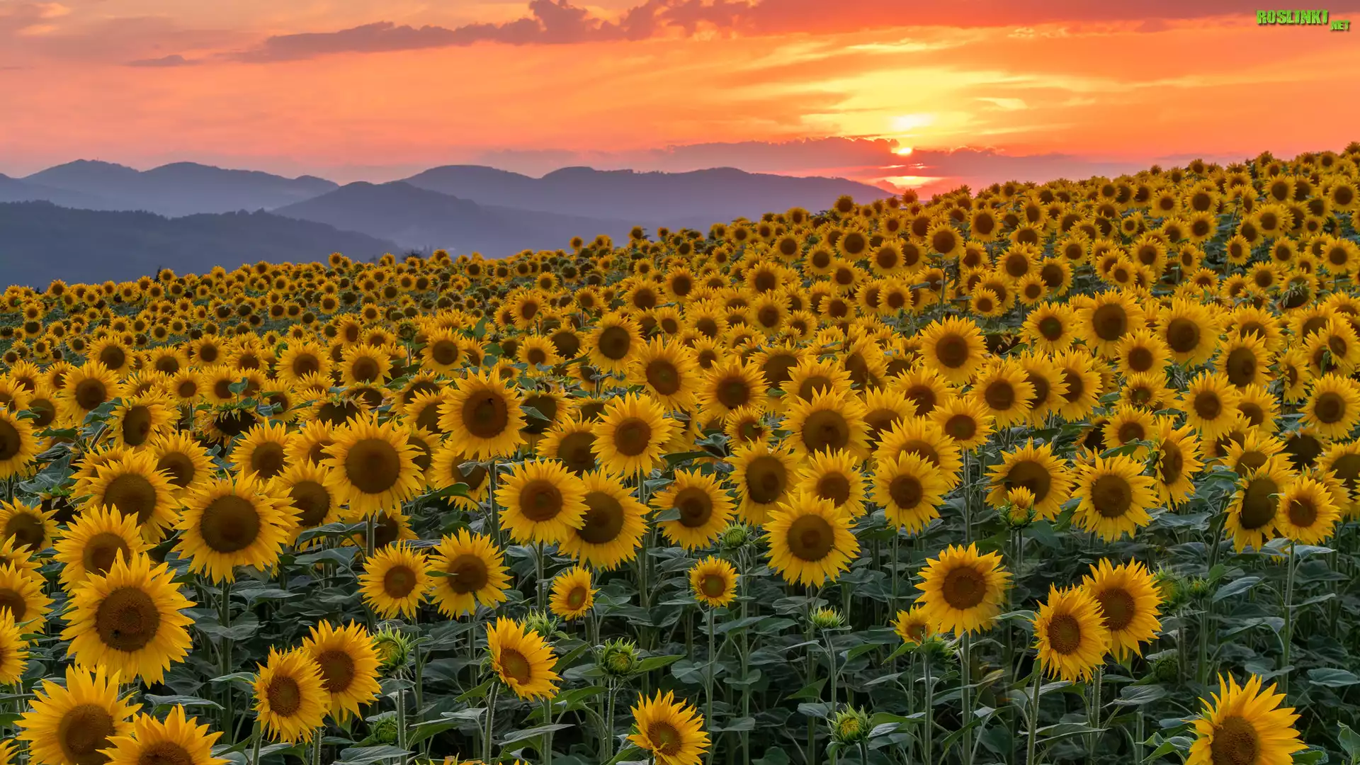 Rośliny: Pole, Kwitnące, Słoneczniki, Zachód słońca