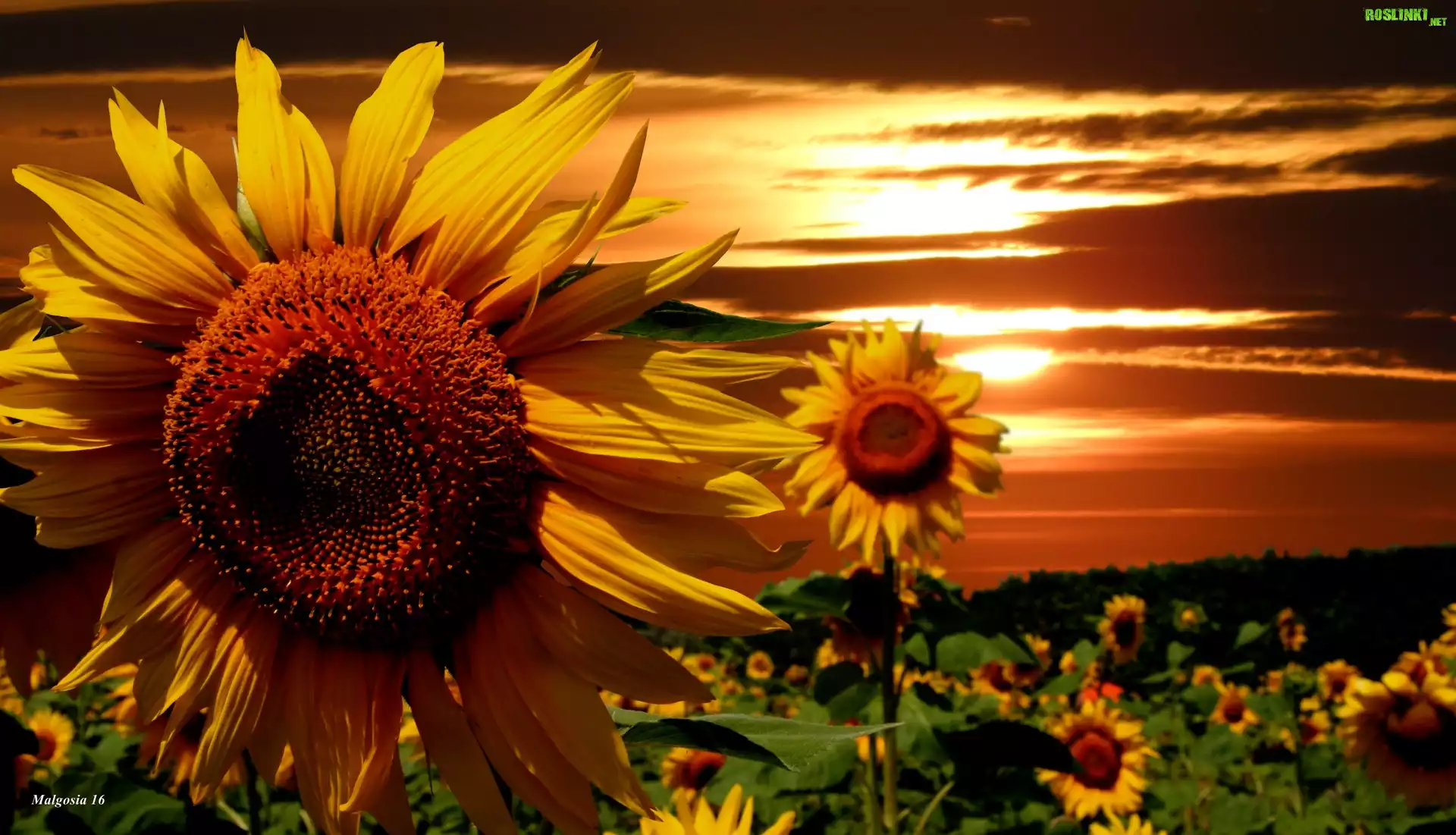 Rośliny: Kwitnące, Słoneczniki, Zachód Słońca