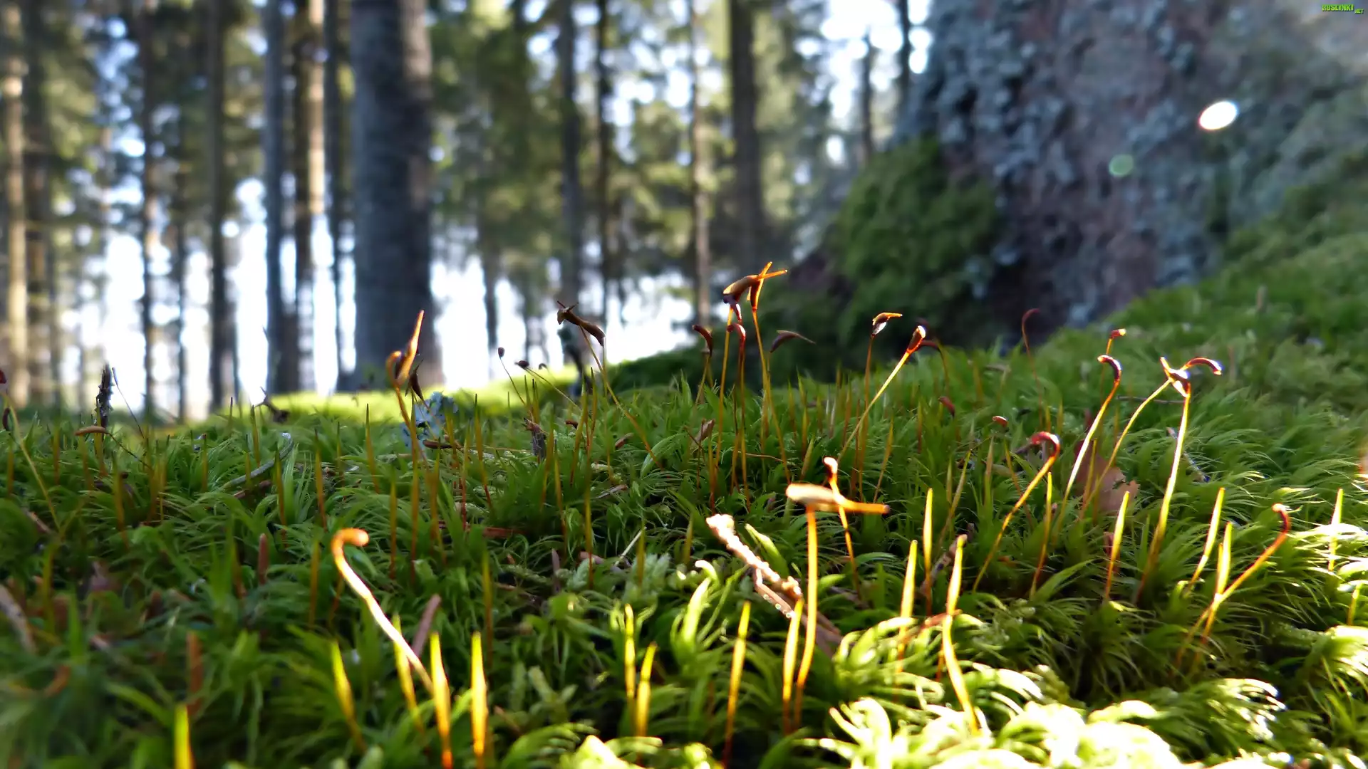 Rośliny: Kwitnący Mech, Las, Przebijające Światło