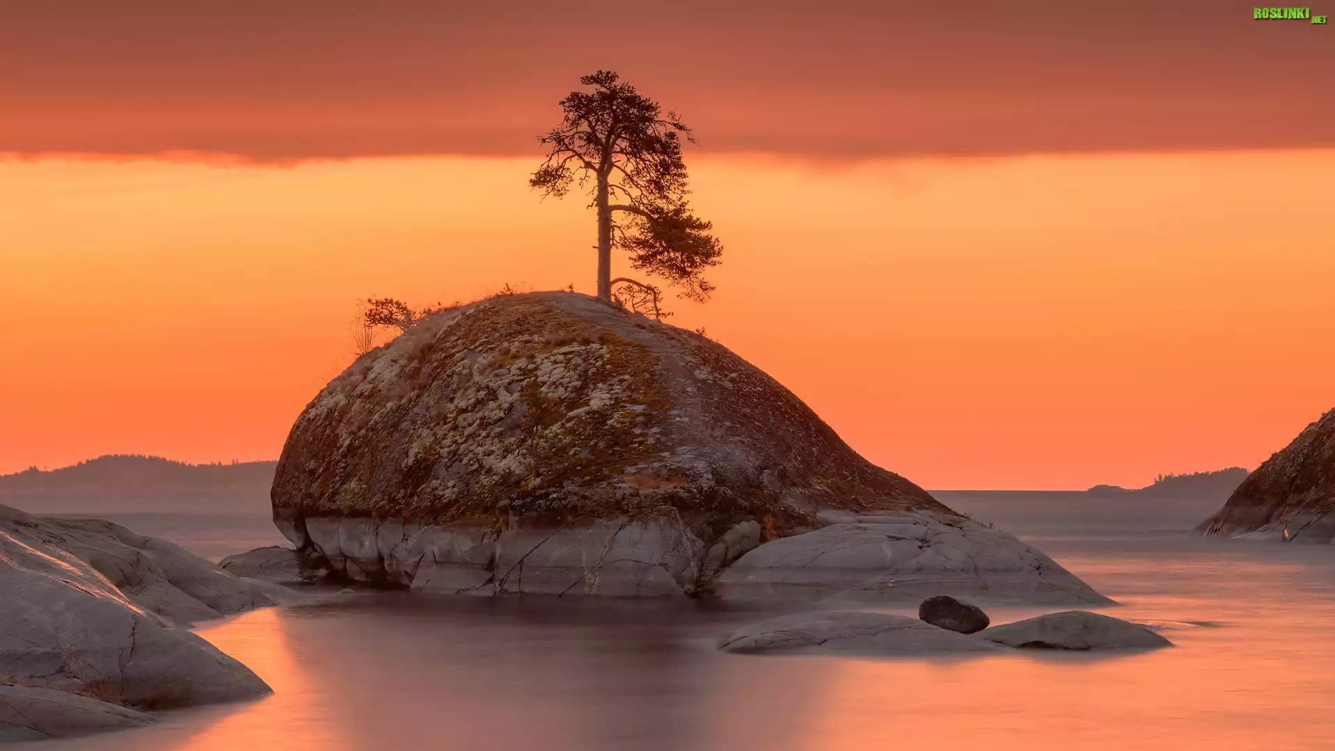 Rośliny: Rosja, Karelia, Jezioro, Ładoga, Skała, Drzewo