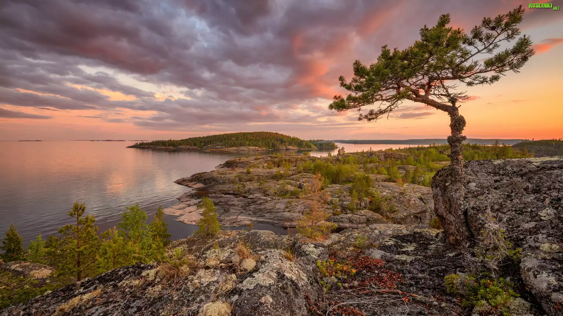Rośliny: Rosja, Karelia, Jezioro, Ładoga, Skały, Jesień, Drzewo