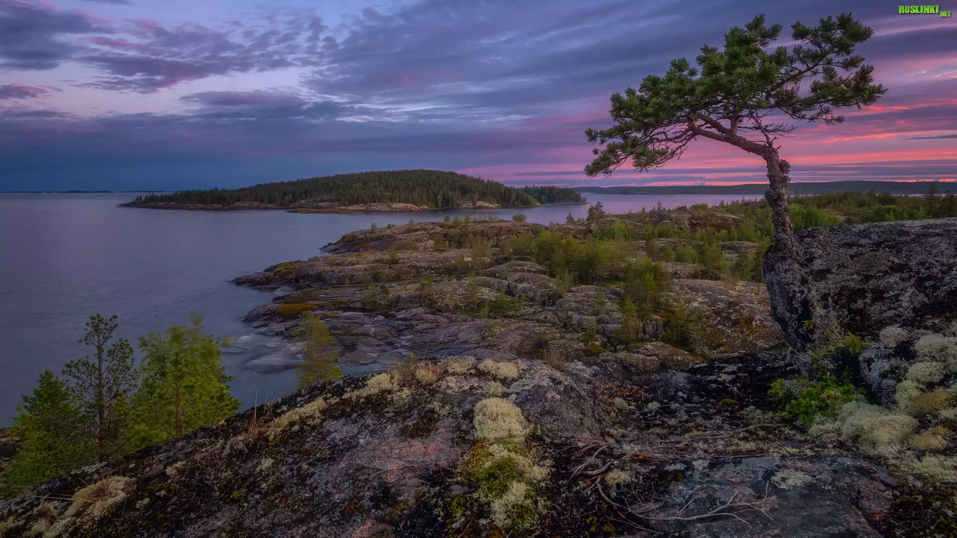 Rośliny: Rosja, Karelia, Jezioro, Ładoga, Wysepka, Skały, Drzewo