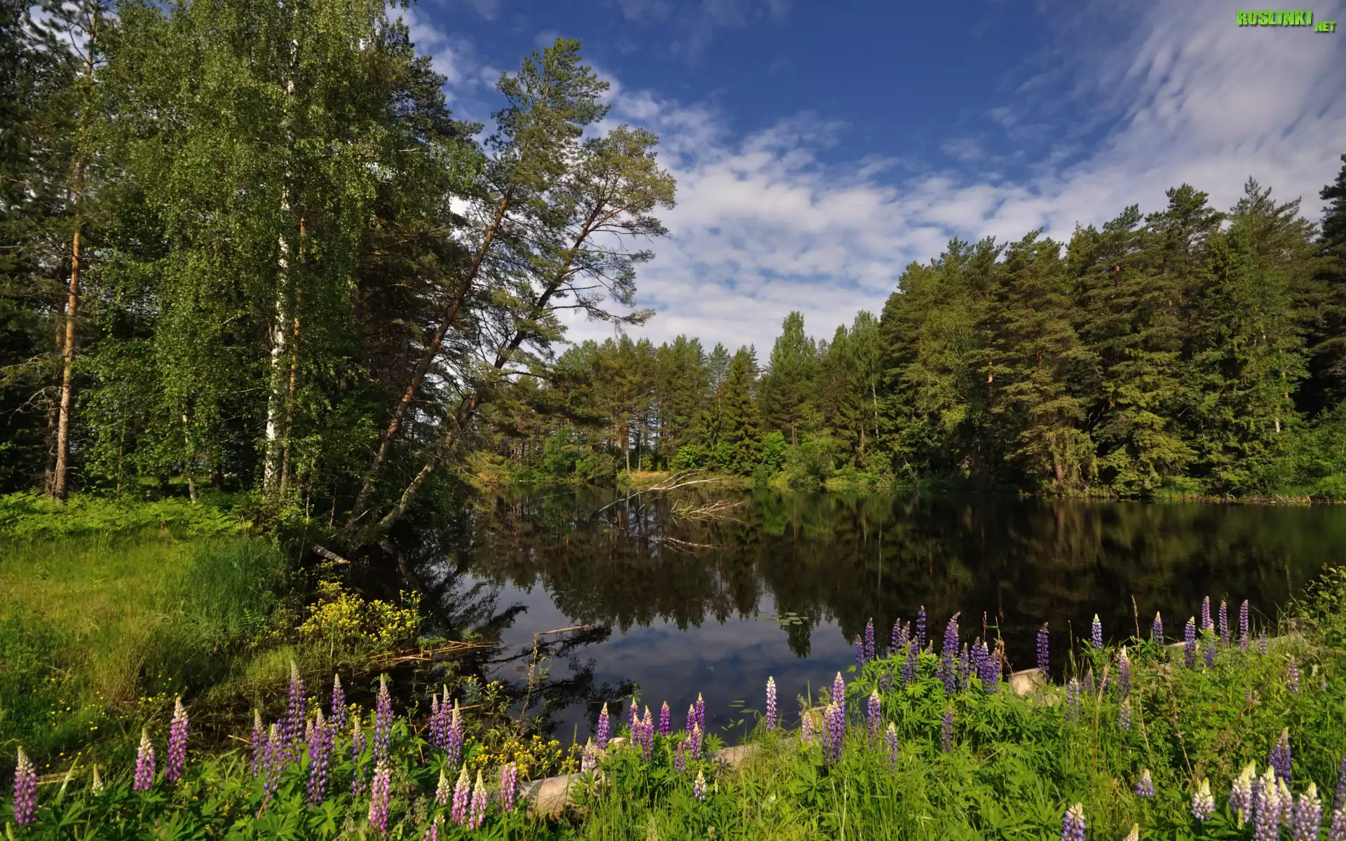 Rośliny: Lato, Rzeka, Las, Łąka, Kwiaty, Łubin, Trawa