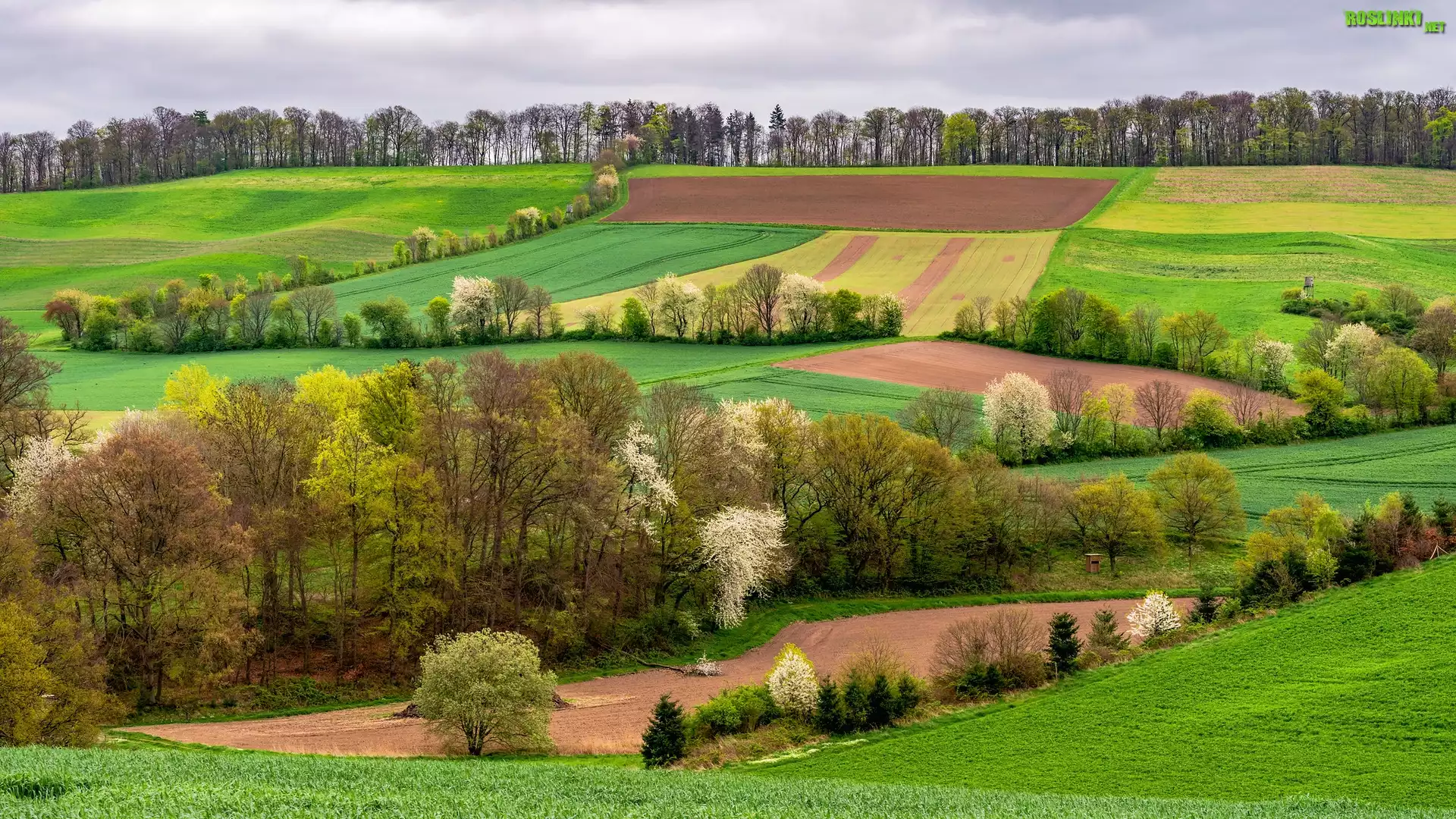 Rośliny: Niemcy, Nadrenia Palatynat, Eifel, Wiosna, Pola, Drzewa, Łąki