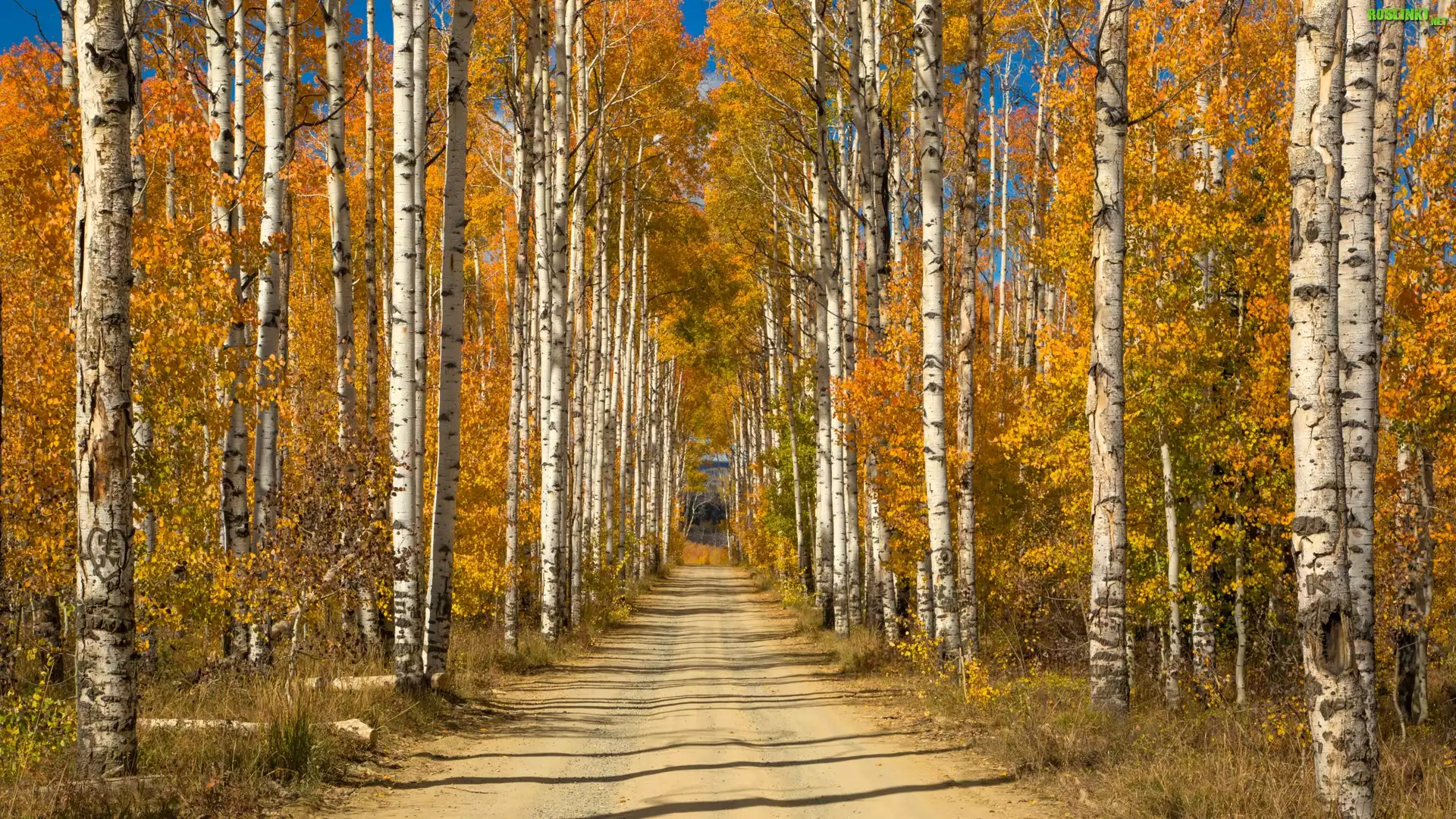 Rośliny: Las, Brzozy, Aleja, Jesień