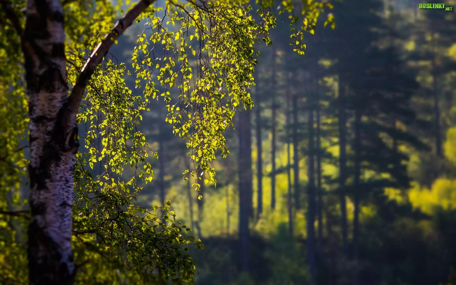 Rośliny: Las, Drzewo, Brzoza, Światło