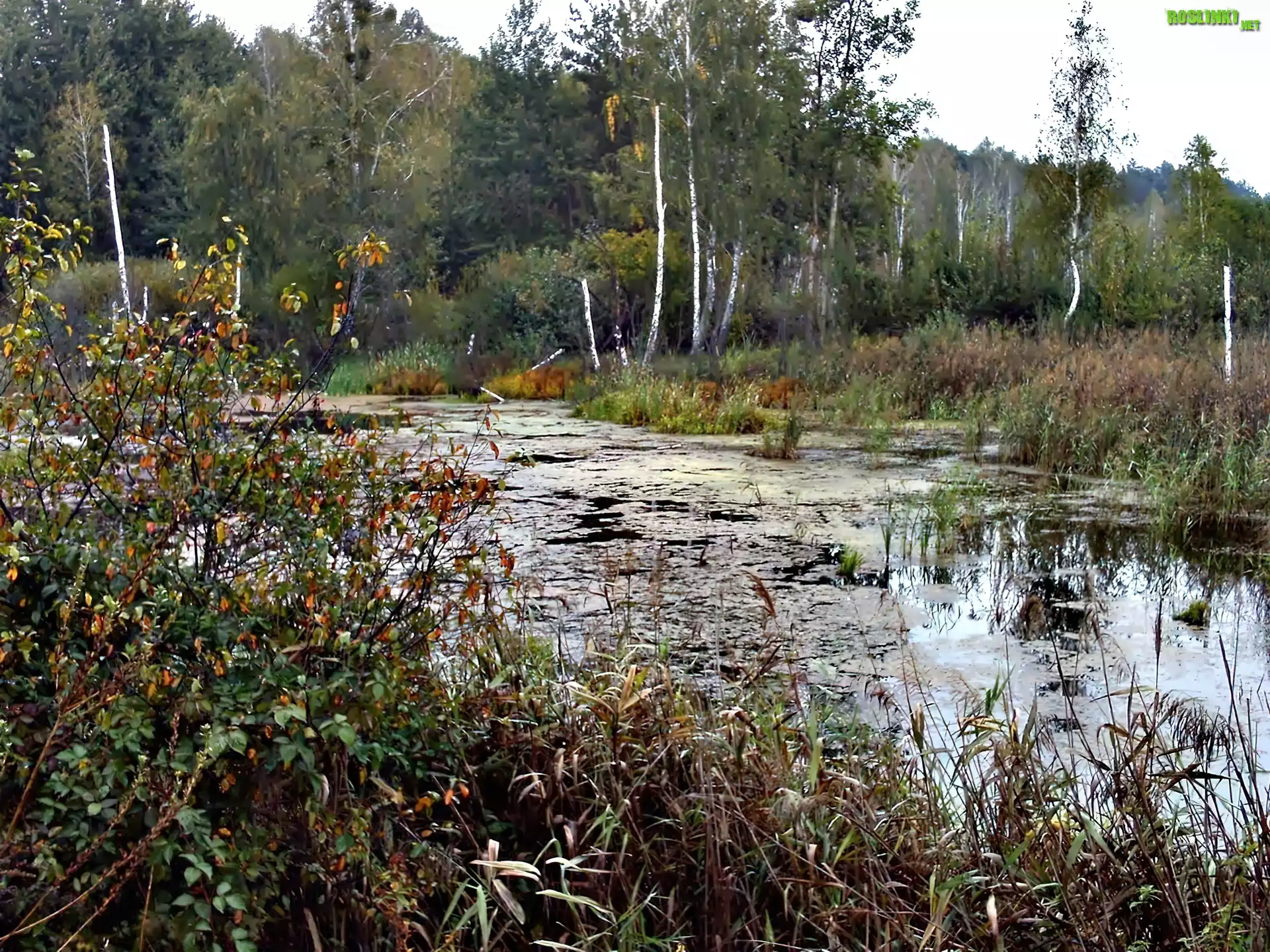 Rośliny: Las, Rzeka, Brzozy, Krzewy