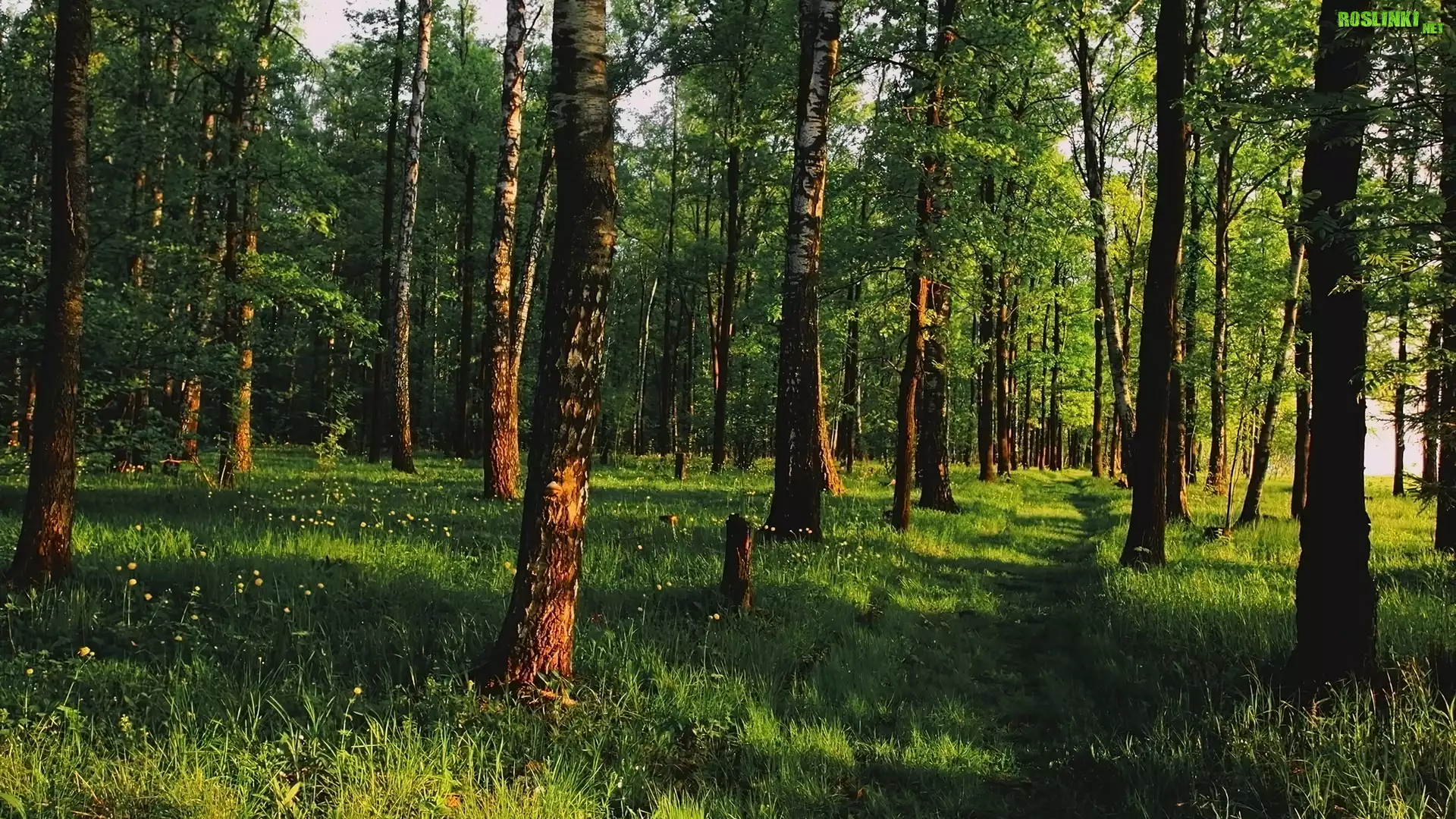 Rośliny: Las, Drzewa, Brzozy, Ścieżka, Trawa
