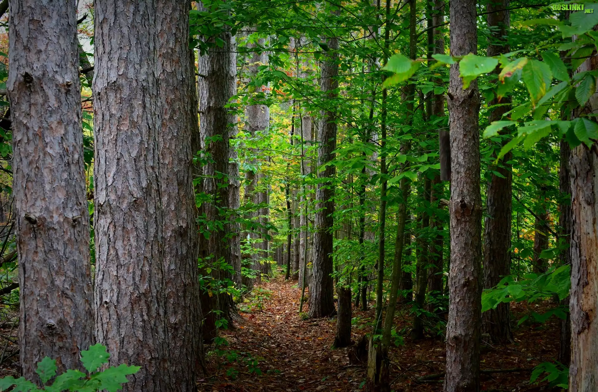 Rośliny: Las, Drzewa liściaste, Ścieżka, Liście